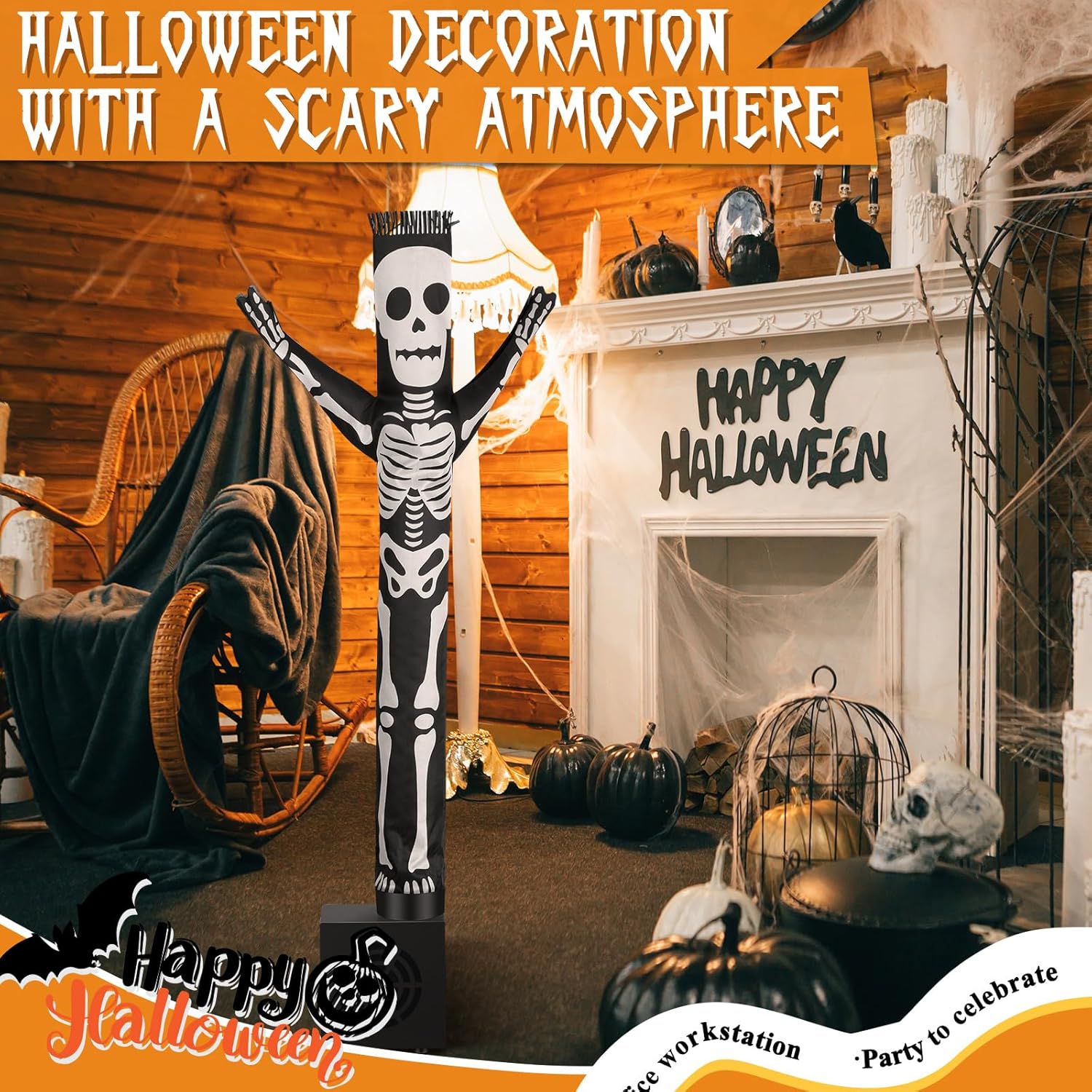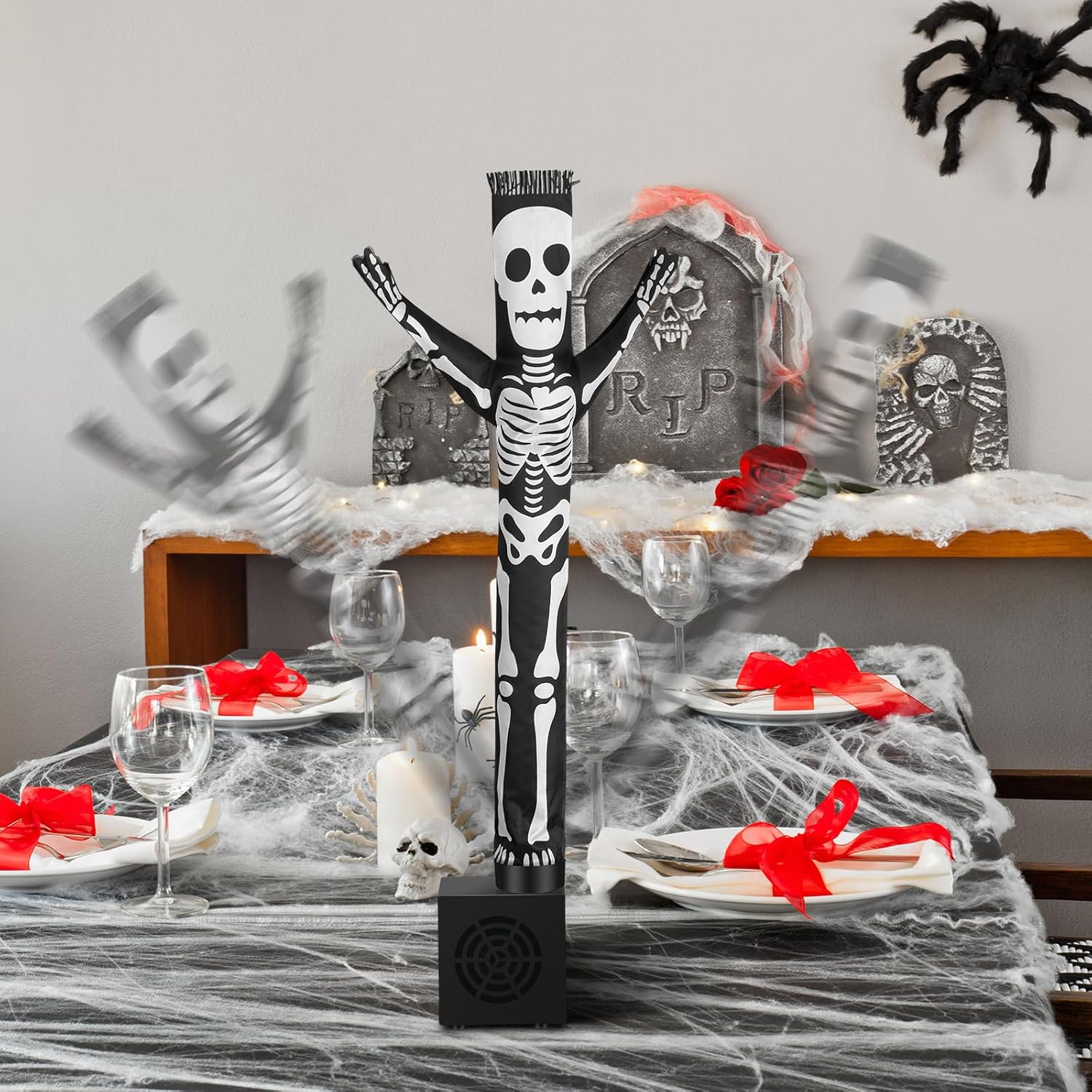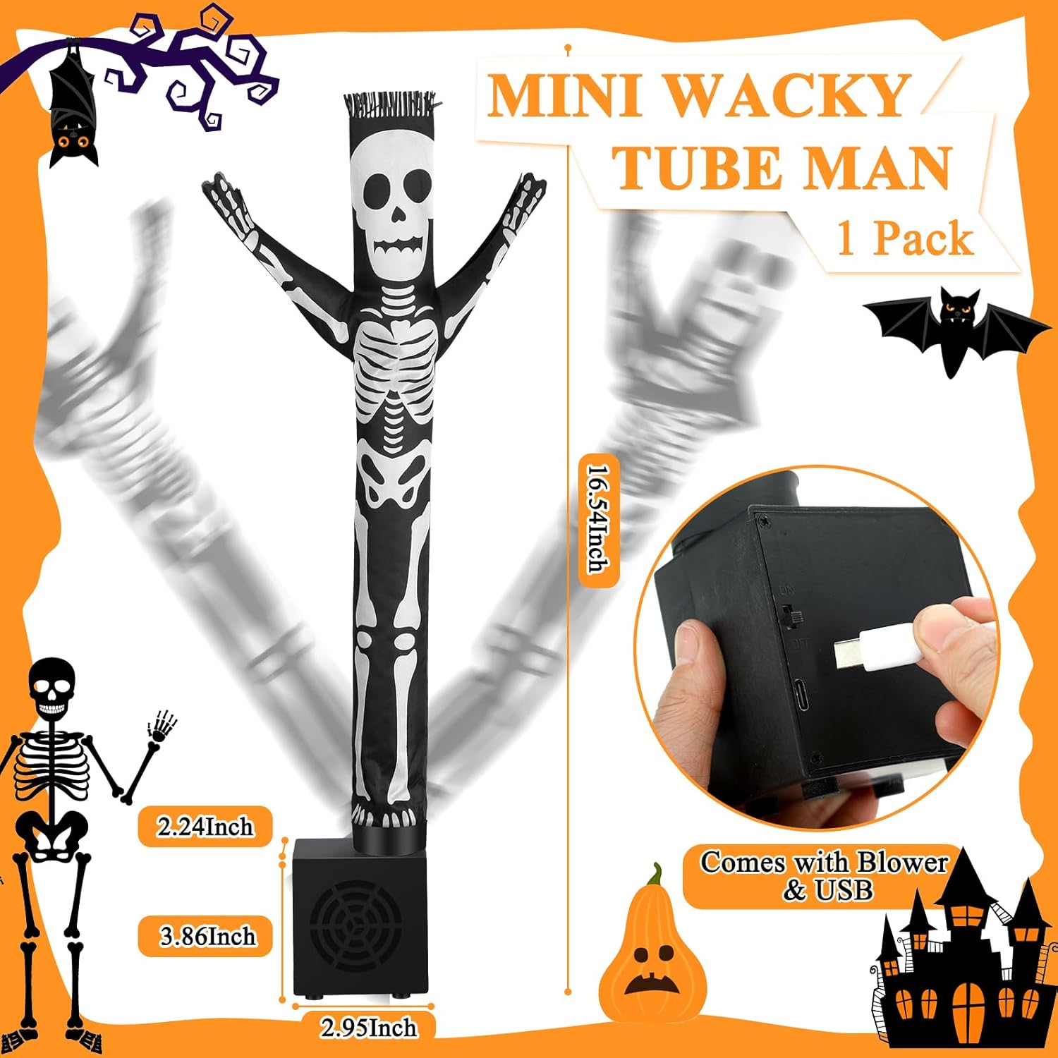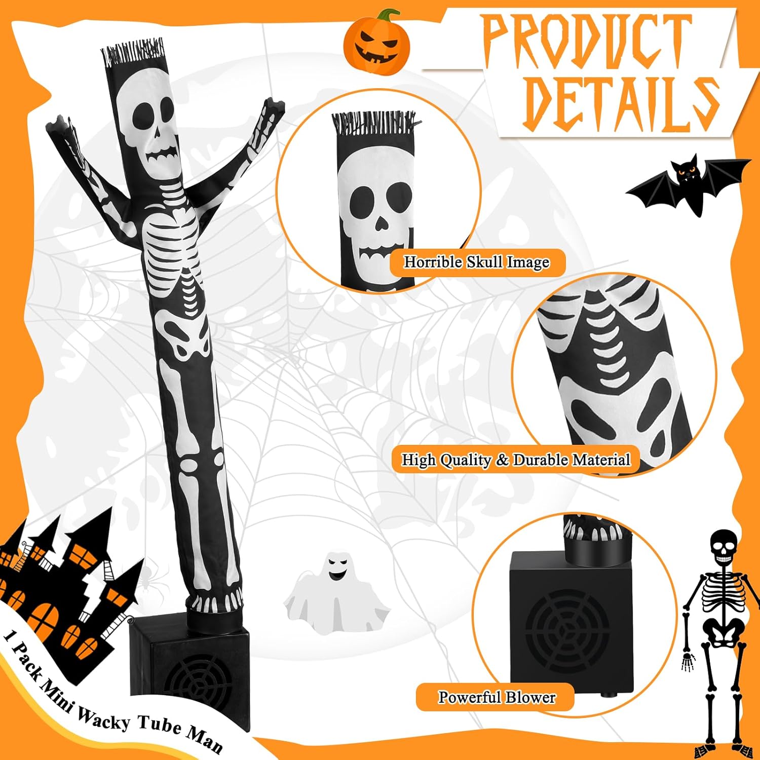 Ideal Size: standing at about 16.54 inches with a mouth diameter of roughly 1.57 inches, the skeleton inflatable desk tube guy is an ideal size to capture attention effortlessly, and the blower measures approximately 2.95 x 2.24 x 3.86 inches, designed to be compact for ease of use and storage while boasting enough power to keep the inflatable tube man well ventilated and inflated throughout the event