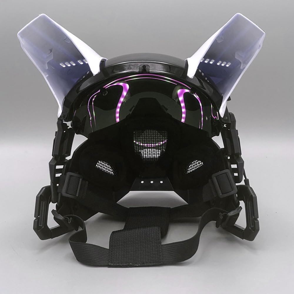 3. Futuristic mask cosplay for men and women, the led mask helmet can be as Halloween mask, masquerade mask, samurai mask, knight helmet, robot mask, futuristic video prop. Notice: Don’t use it as motorcycle helmet.