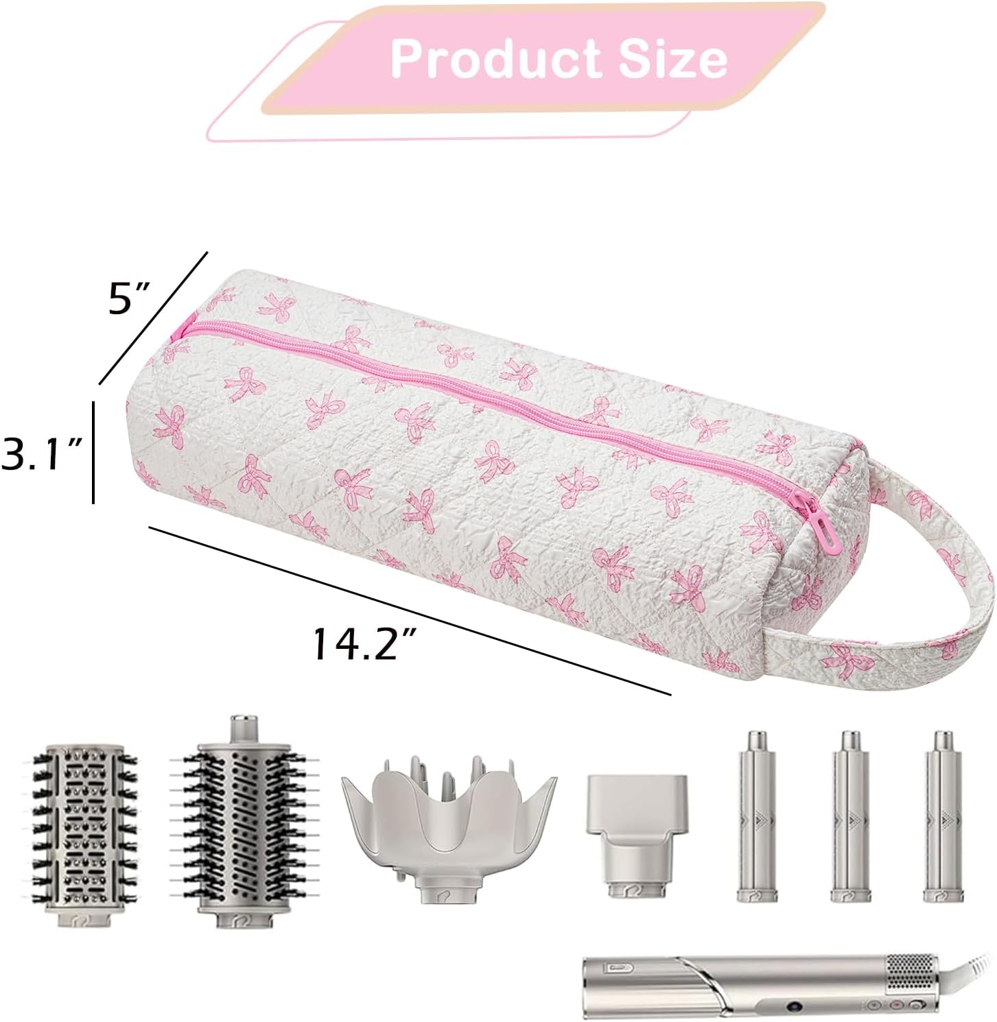 [Product Size]:The dimensions of the hair dryer bag are: 14.2 inches x5inches x3.1inches. Large capacity design suitable for flat irons, curling irons, hair straighteners, curling wands, and other styling tools.