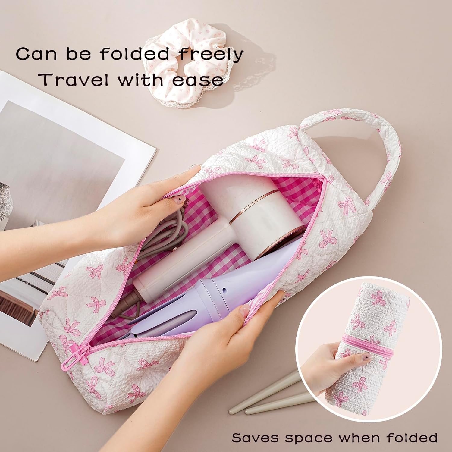 [Material]: The exterior of the hair dryer bag is made of quilted polyester, which is soft and skin-friendly.