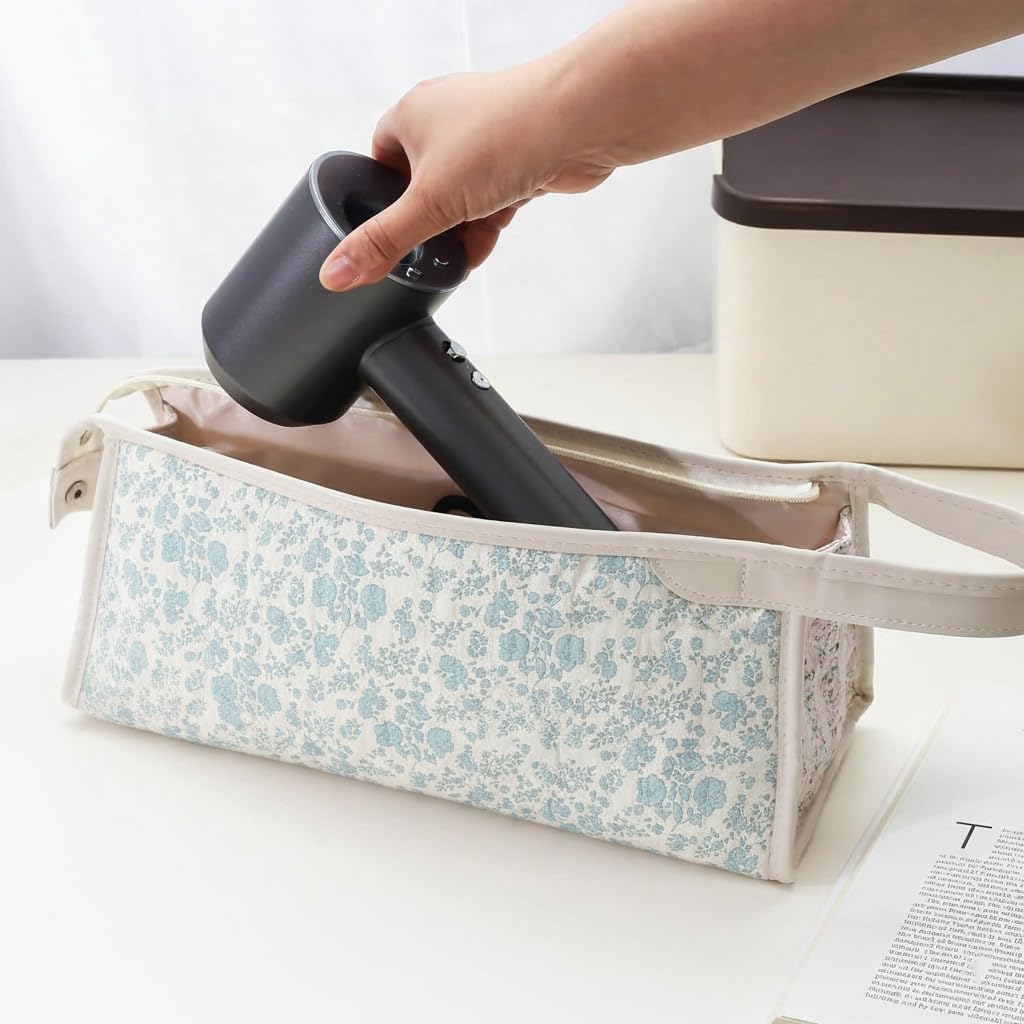 Quilted Travel Case for Dyson Airwrap & Shark FlexStyle, Cotton Floral Carrying Bag for Hair Dryer and Attachments, Portable Organizer with Handle
