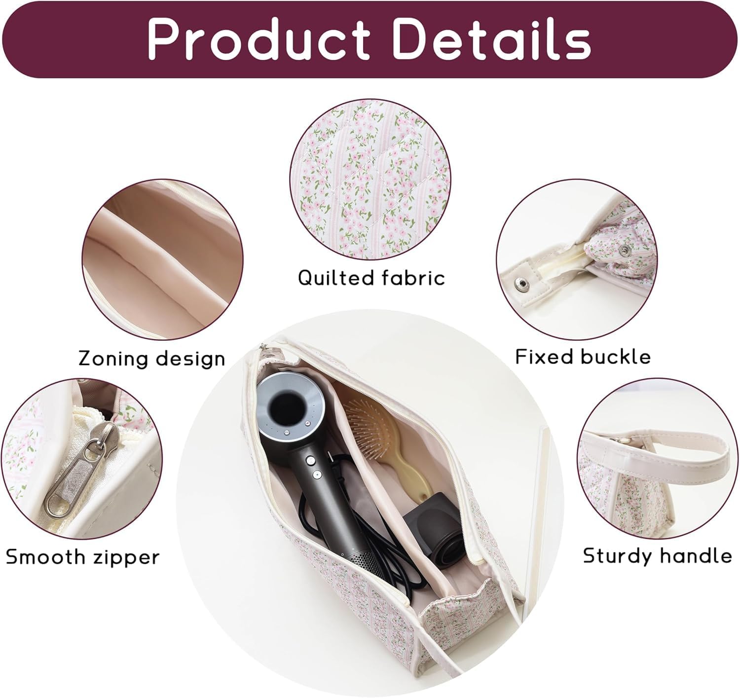 【Universal Fit for Hair Styling Tools】 Designed to fit the Dyson Airwrap, Shark FlexStyle, and other popular styling tools, this quilted travel case keeps your hair dryer, attachments, and accessories neatly organized wherever you go.