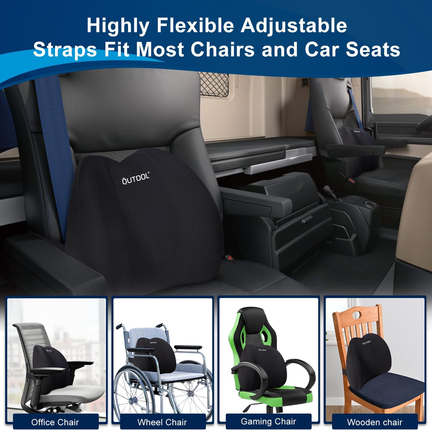 QUTOOL Lumbar Support Pillow for Office Chair, Memory Foam Low Back Support,Back Pain Relief, Ergonomic Back Cushion for Desk Chair,Gaming Chair,Adjustable Strap and Washable Cover