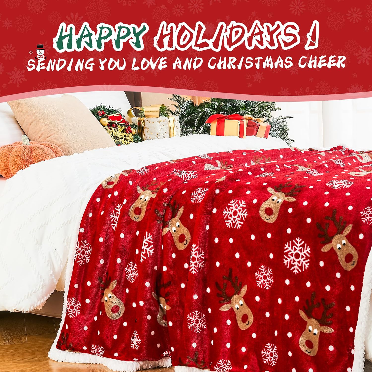 Ramees Sherpa Christmas Throw Blanket, Fuzzy Fluffy Soft Cozy Blanket, Fleece Flannel Plush Blanket for Couch Bed Sofa