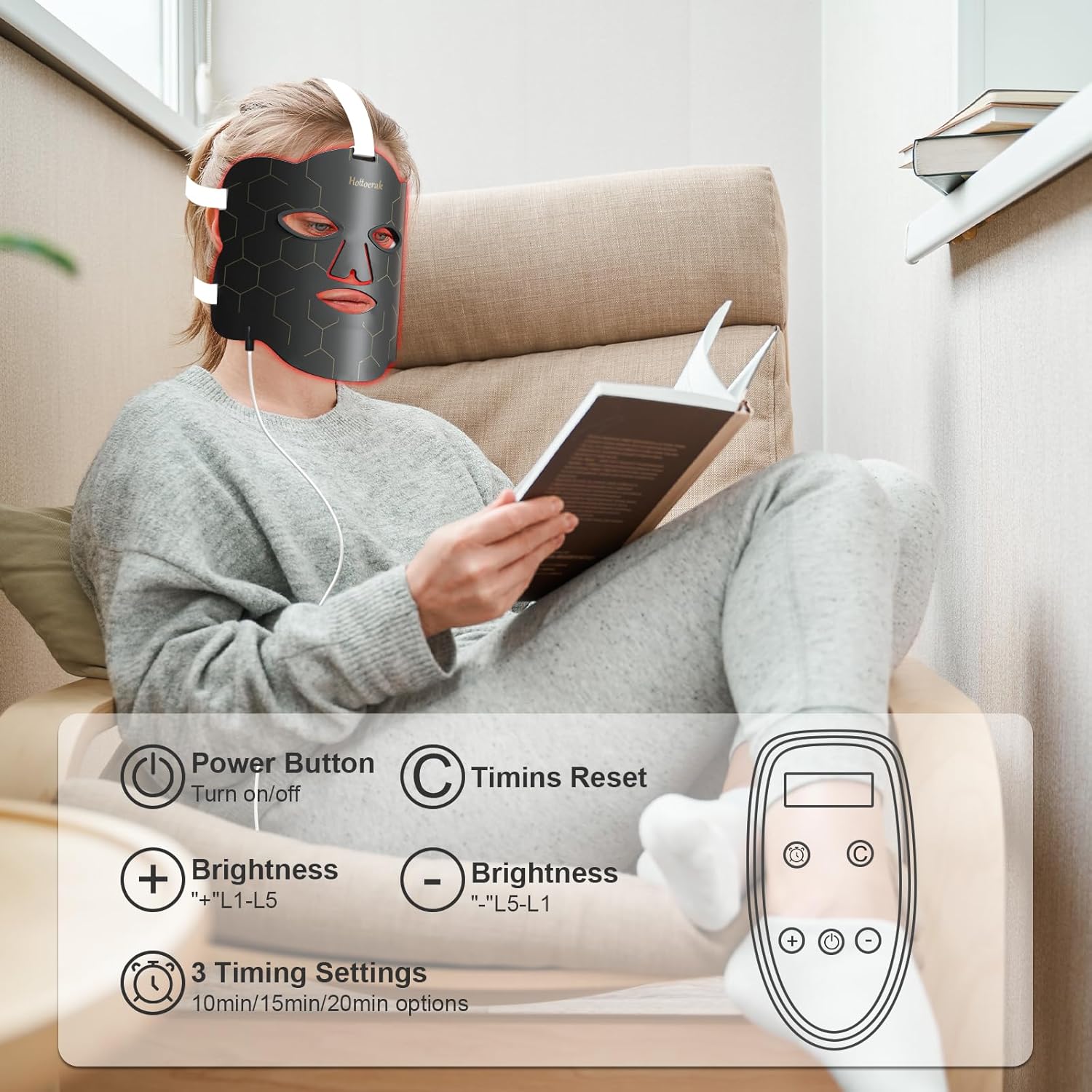Flexible Power Options: The Hottoerak red light mask includes a mobile power bank, allowing hassle-free use anywhere. It can be used plugged in or on the go—there is no need to wait for charging