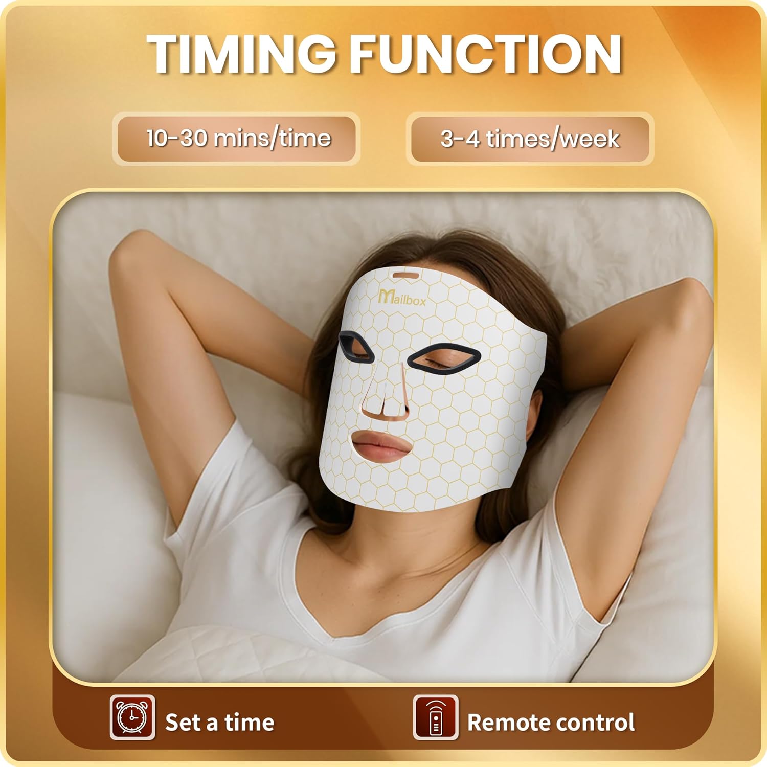 【2100mAh Rechargeable Remote】Easily customize your treatments with a wireless rechargeable remote. Choose from 10, 15, 20, 25, or 30-minute sessions — the mask automatically shuts off for your safety and convenience after each use