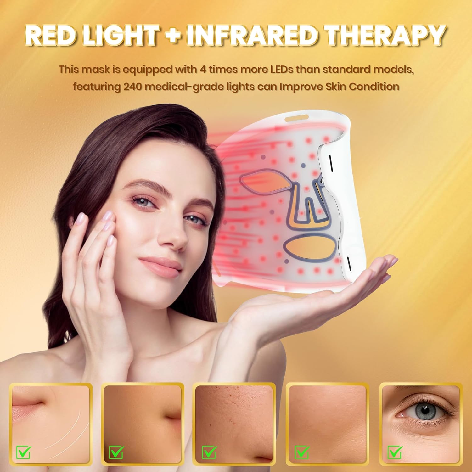 【240 Professional LEDs – Full Face & Neck Coverage】Equipped with 240 LEDs for the face , this dual-zone design offers complete and consistent light coverage