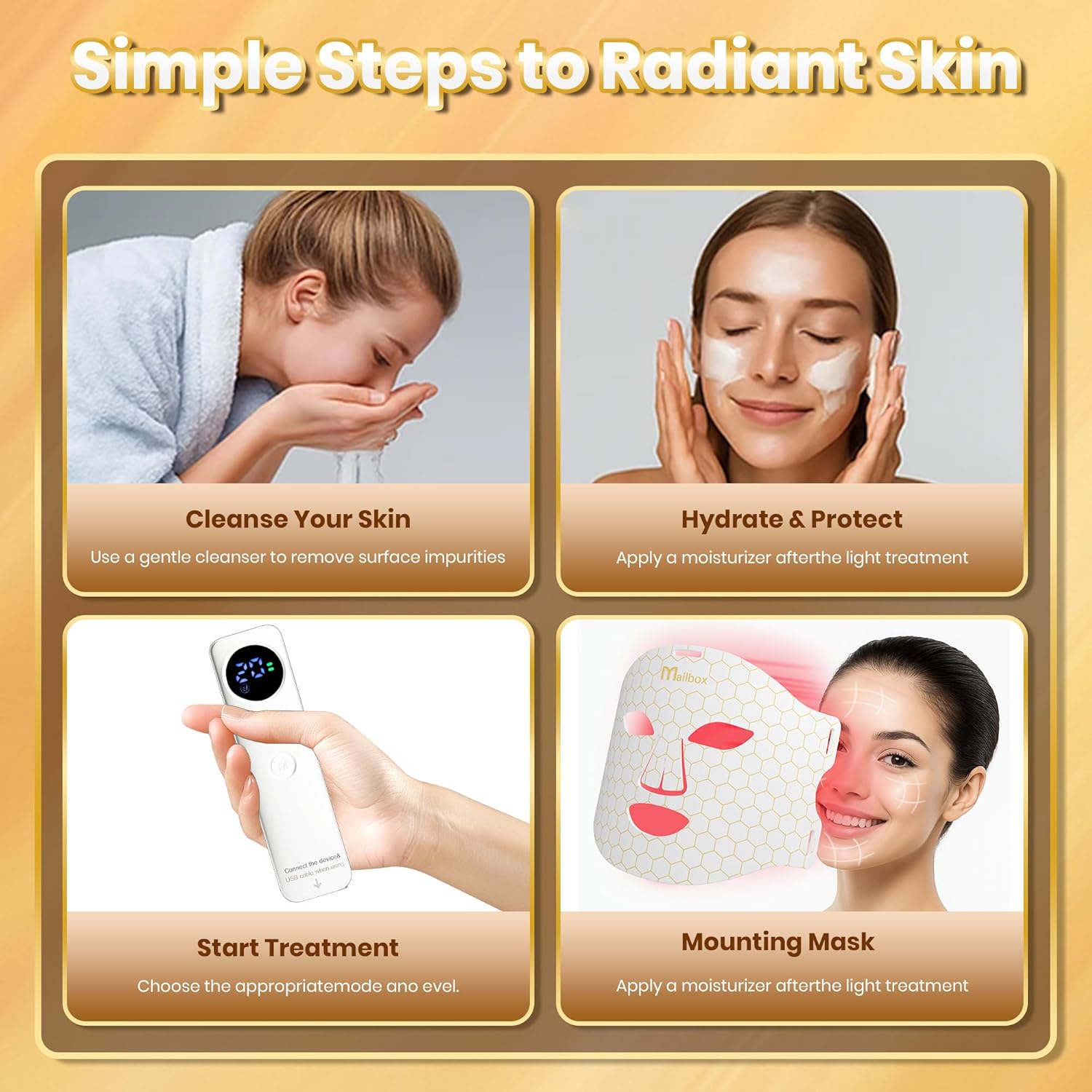 【Advanced 4-Wavelength Light Spectrum】 Experience comprehensive skincare with 4 distinct modes — red light Spectrum mask(850nm) & Red Light (630nm), Purple Light (420nm) and Blue Light (460nm)