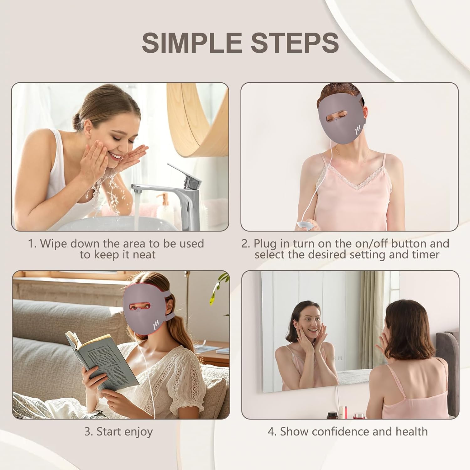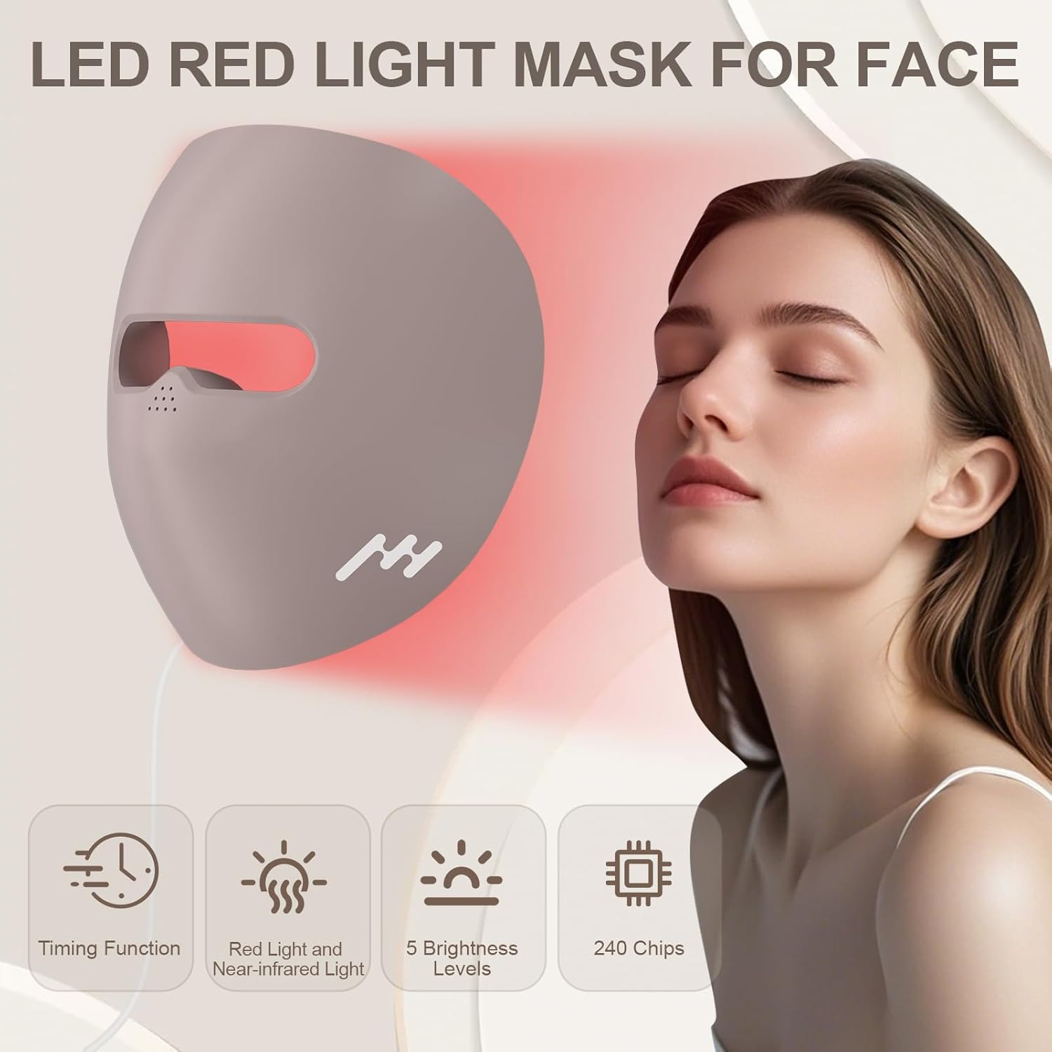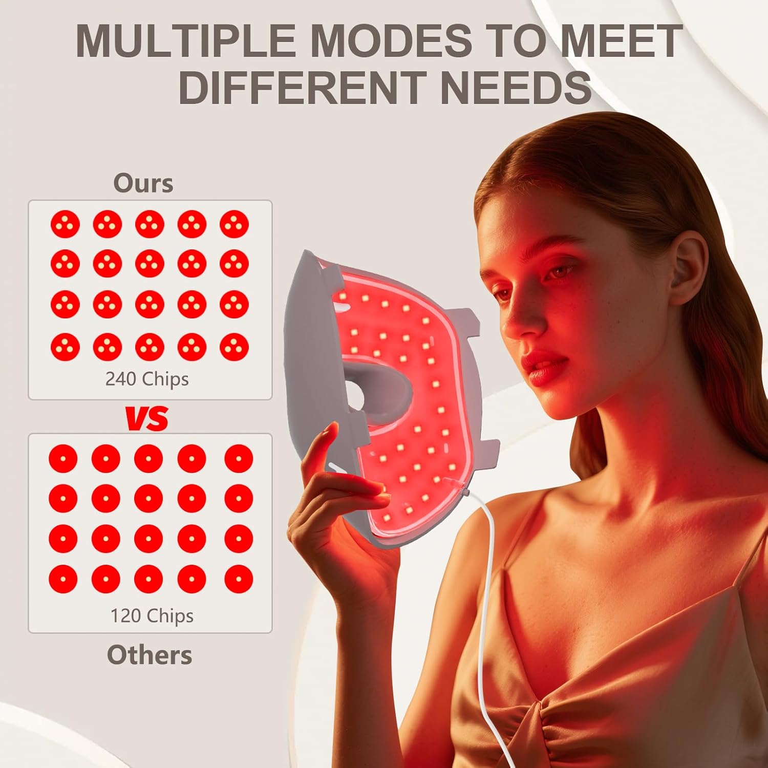 3-in-1 Chip: The LED light face mask has 5 levels of brightness adjustment and 240 chips for personalized settings. Our red light lamp has 850nm near-infrared and 660nm infrared for facials and can meet daily needs