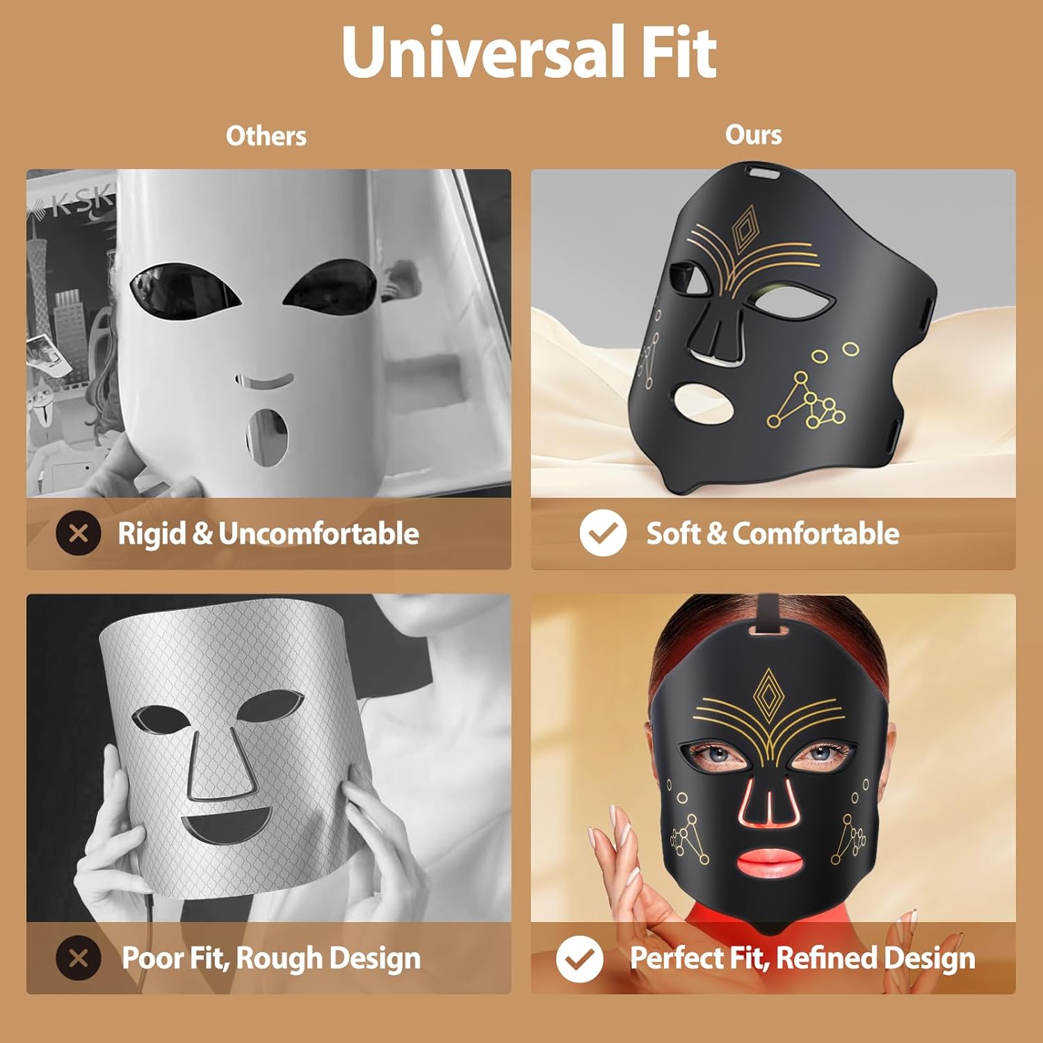 Gentle Brightness for Comfort: As a practical LED face mask, it has 3 adjustable brightness levels, all calibrated for gentle, daily use. Whether you prefer a soft glow or moderate intensity, the brightness controls smoothly to keep your experience pleasant every time.