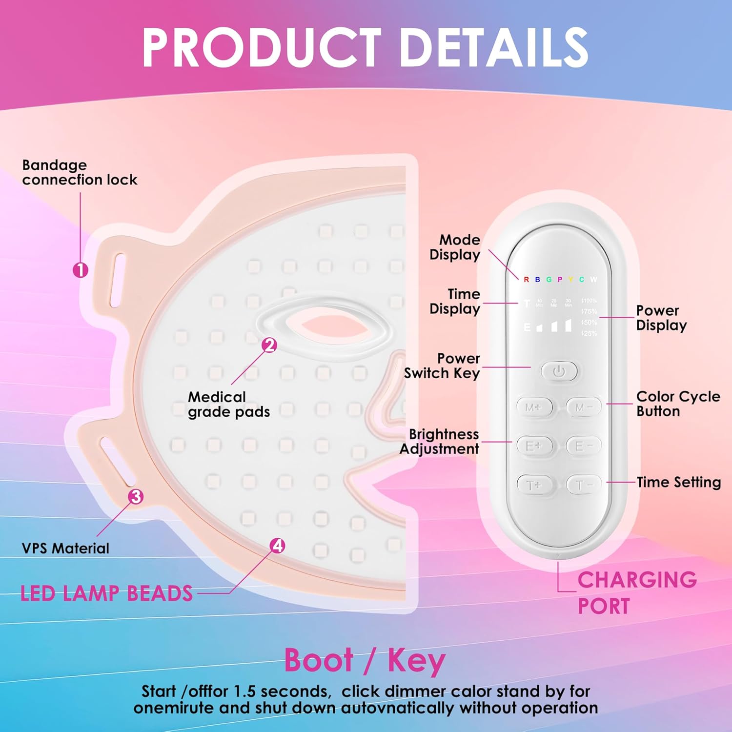 Versatile Color Options: Our facial mask offers seven colors to target various skin concerns, When using it, you can choose the wavelength that suits you