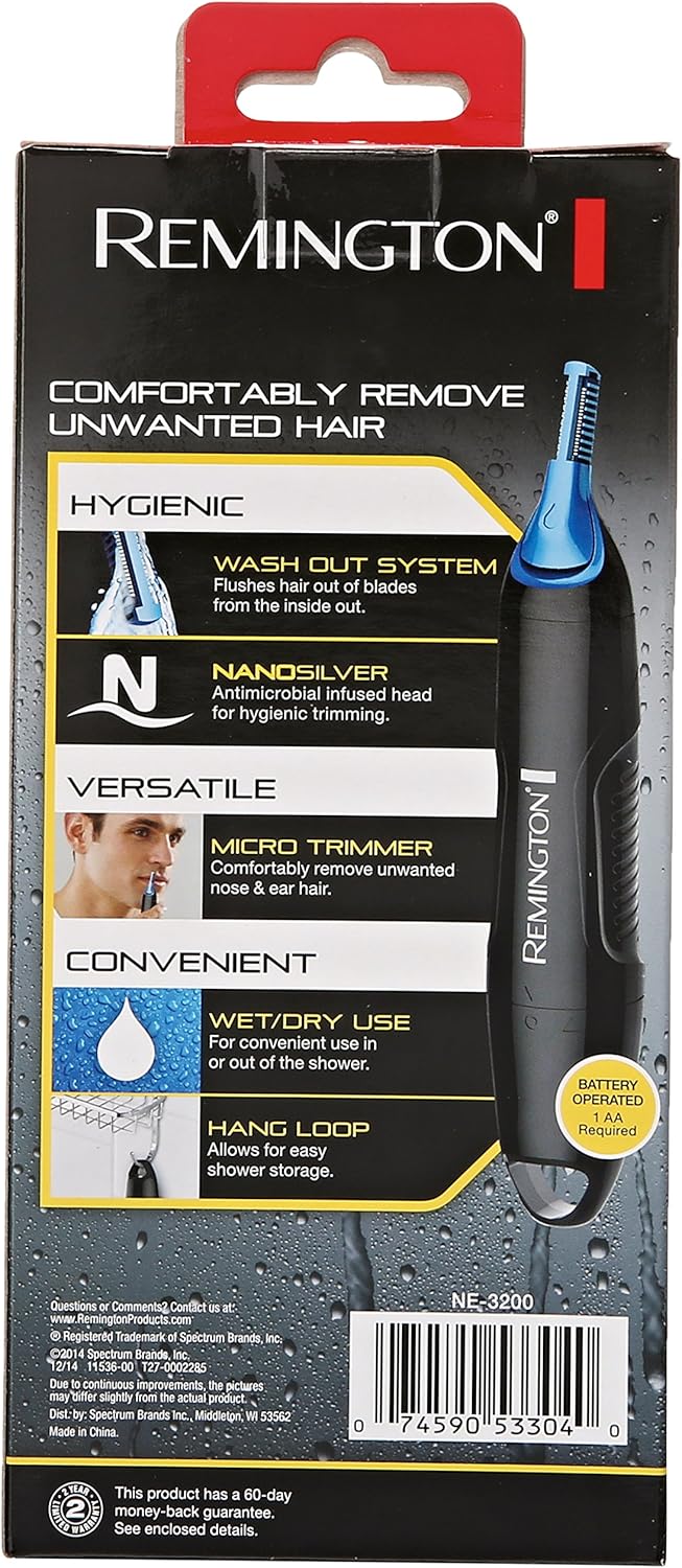 Keep the details in check with the REMINGTON Nose, Ear & Detail Trimmer with CLEANBoost Technology. In or out of the shower, this battery-operated trimmer quickly and comfortably removes unwanted hair using the Comfort Trim blades. CLEANBoost Technology is our exclusive washout system. Just press the CLEANBoost button to open the blades and wash them from the inside out to maintain peak performance. This trimmer is perfect on sideburns, eyebrows, ears, and nose. The included eyebrow comb makes it easy to evenly trim your eyebrows.