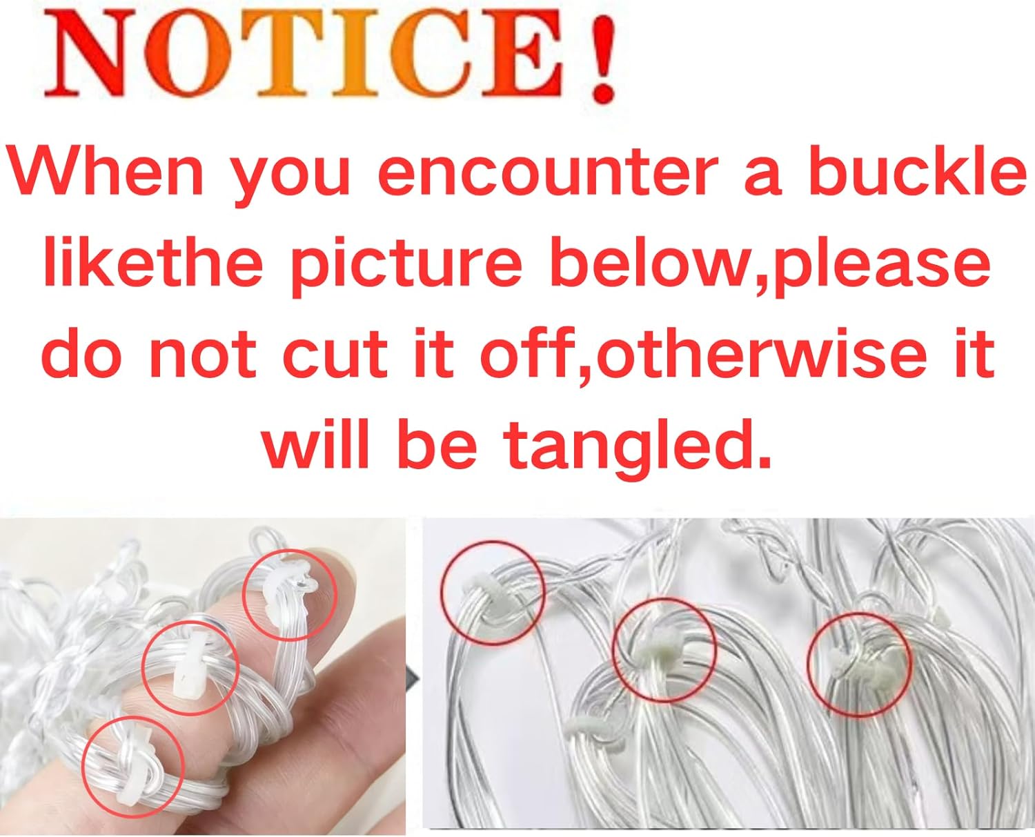 (If Only One Person, Please Place The Curtain Light on The Ground, Starting From The Curtain Light Main Line (with Battery Box), Find The Hanging Light Lines One By One and Untie Them) (the Line with Snowflakes Is The Hanging Light Line)