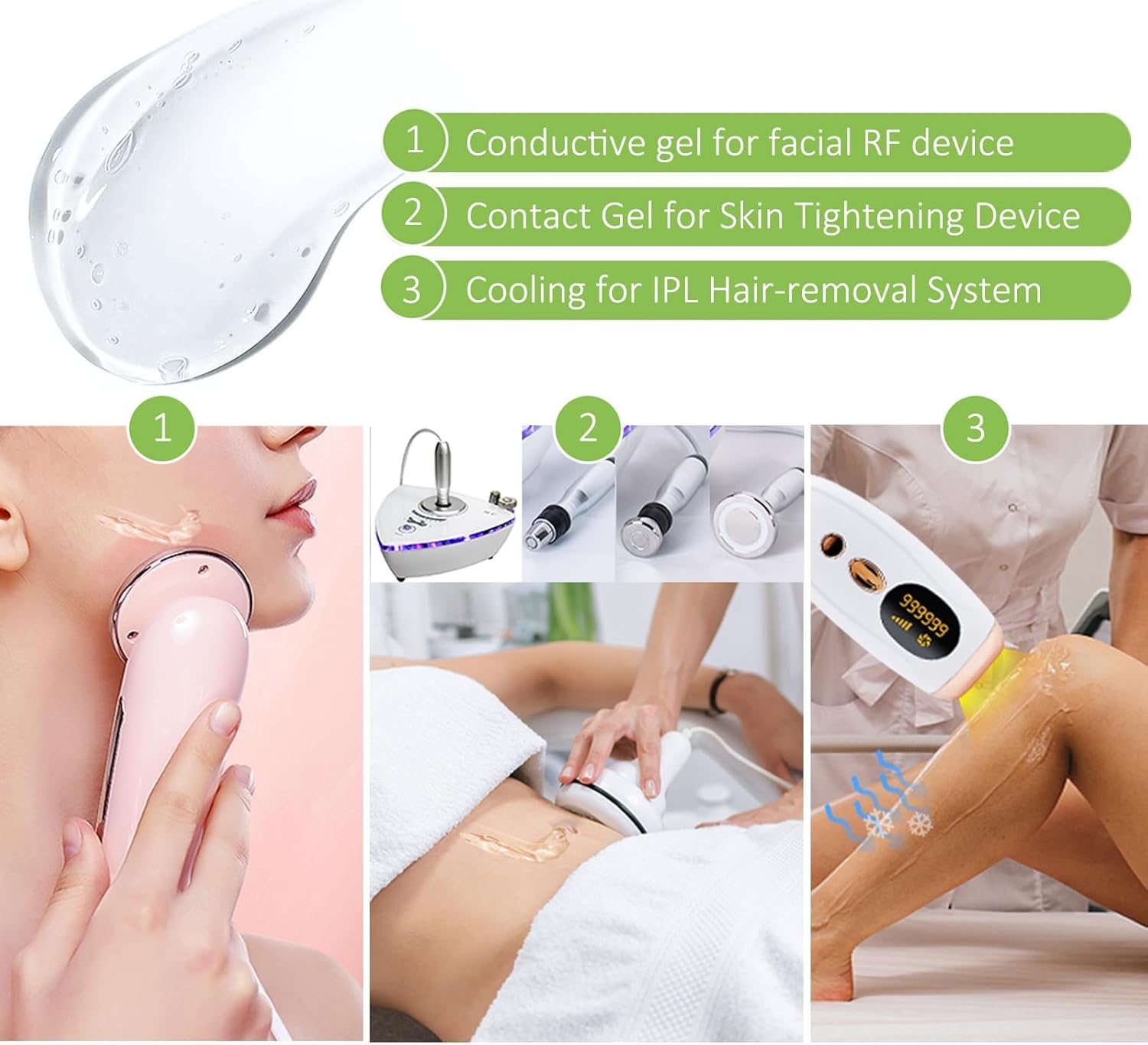 RF Skin Cooling and Conducting Gel for Use with RF Face Lifting and Skin Tightening Beauty DevicesRF Skin Cooling and Conducting Gel for Use with RF Face Lifting and Skin Tightening Beauty Devices