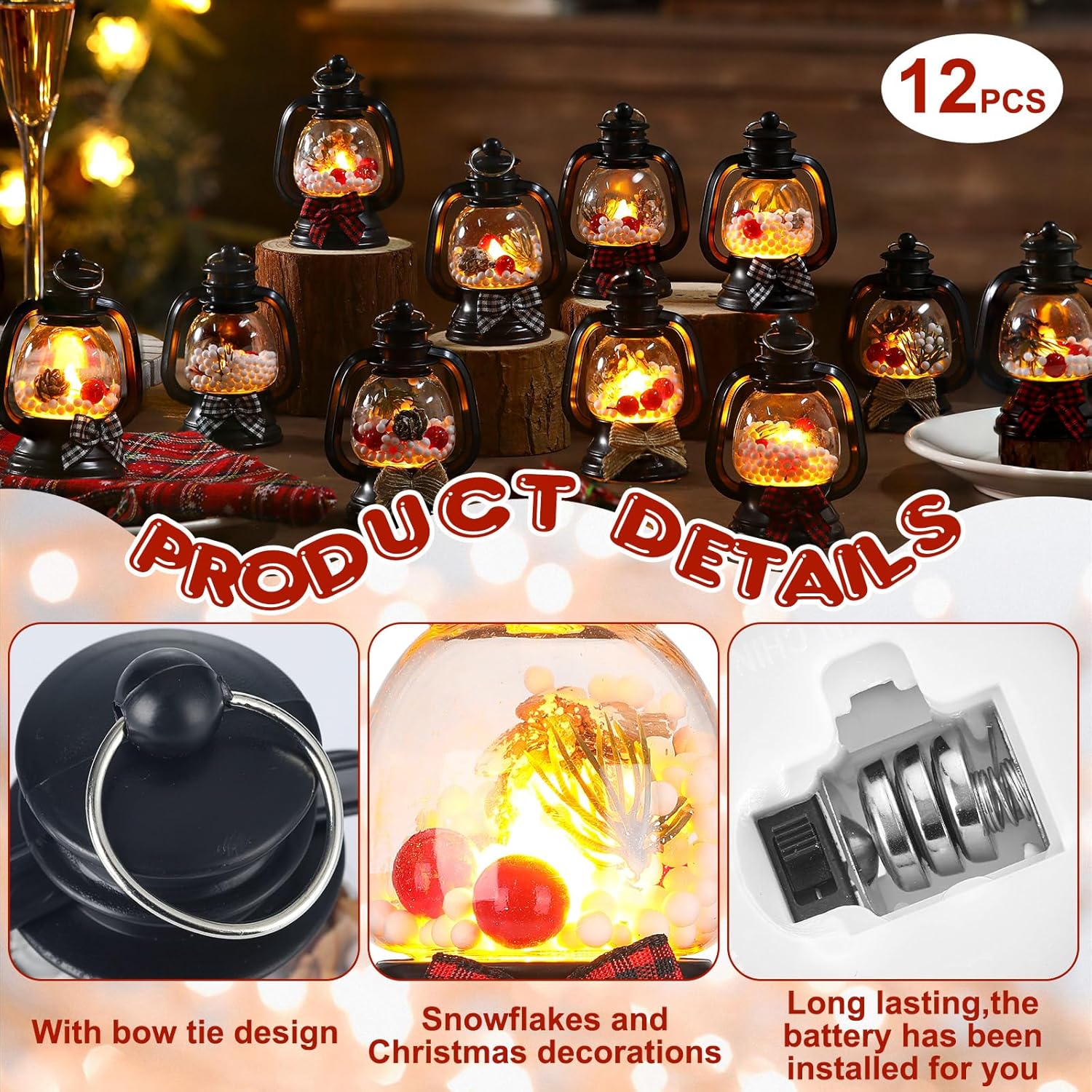 Sufficient and Various: you will receive 12 pcs Christmas lantern with pine cones, berries, pine branches flickering LED lights in 3 designs, 4 pcs for each design, enough quantity to satisfy your daily lantern use and festival decorative needs, ideal for your home, garden, patio and more