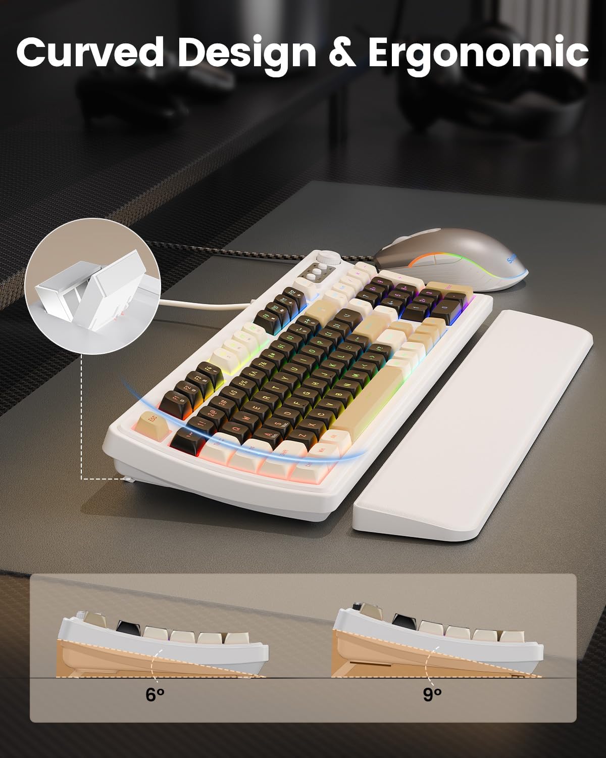 【Low Latency & Anti-Ghosting】Equipped with a reliable wired connection, the keyboard gaming guarantees ultra-low latency and instant responsiveness, ensuring every keystroke and mouse movement is registered accurately. Features 19-key anti-ghosting and a compact 98% layout to save space without sacrificing performance—ideal for gaming, fast typing, or complex shortcut operations