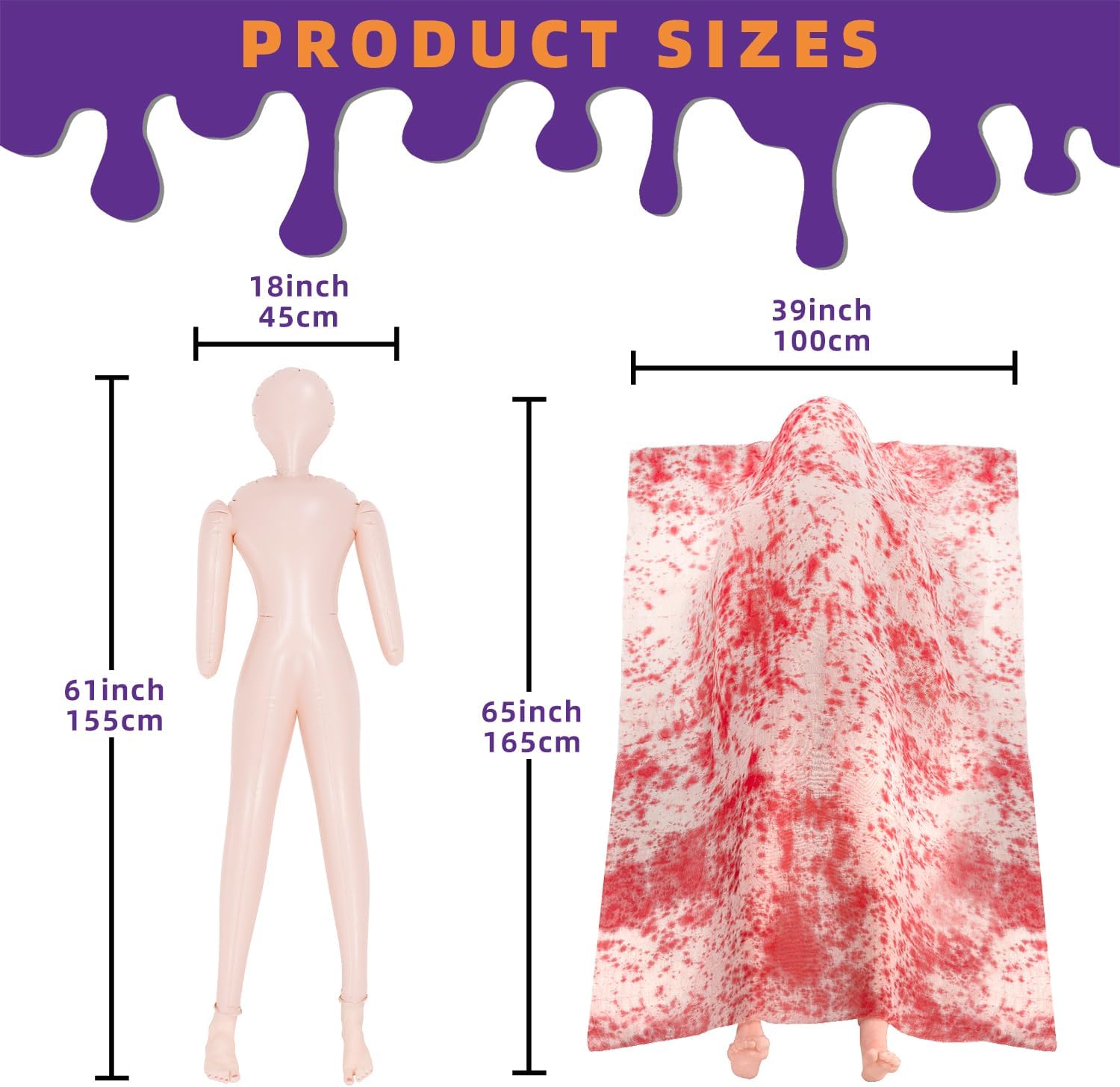 Simple to Set Up and Reusable: All you need to do is inflate the body to complete the installation(If you inflate with your mouth, you need to first press the air valve.).Made of sturdy materials, the Halloween victim decoration is not prone to damage. After use, it can be folded and stored for next Halloween, offering long-term value.