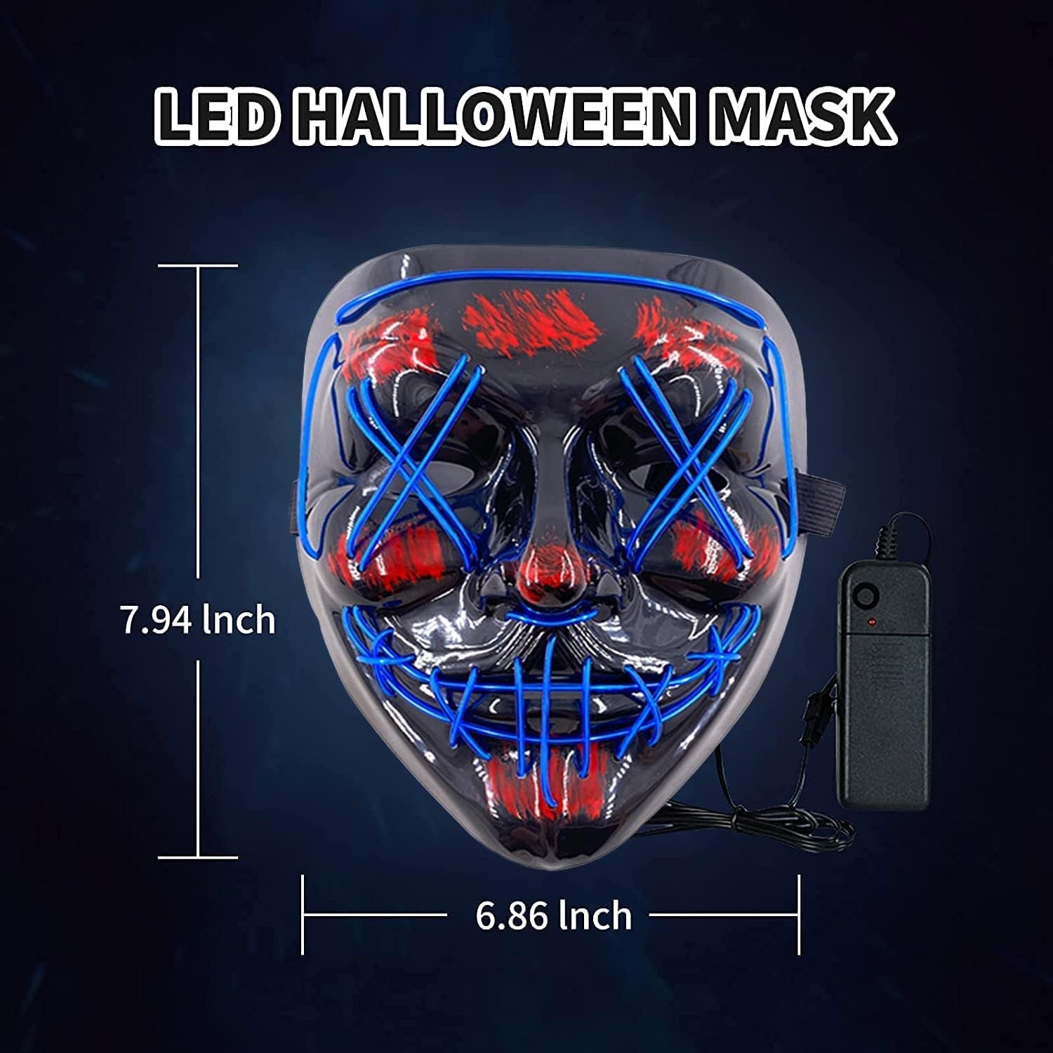 LED light up adult Halloween party masks are powered by 2 AA batteries (not included). Comfortable wear with adjustable or elastic strap to fit around your head. Package comes with 1 LED mask and battery pack (for batteries not included). Long battery life.