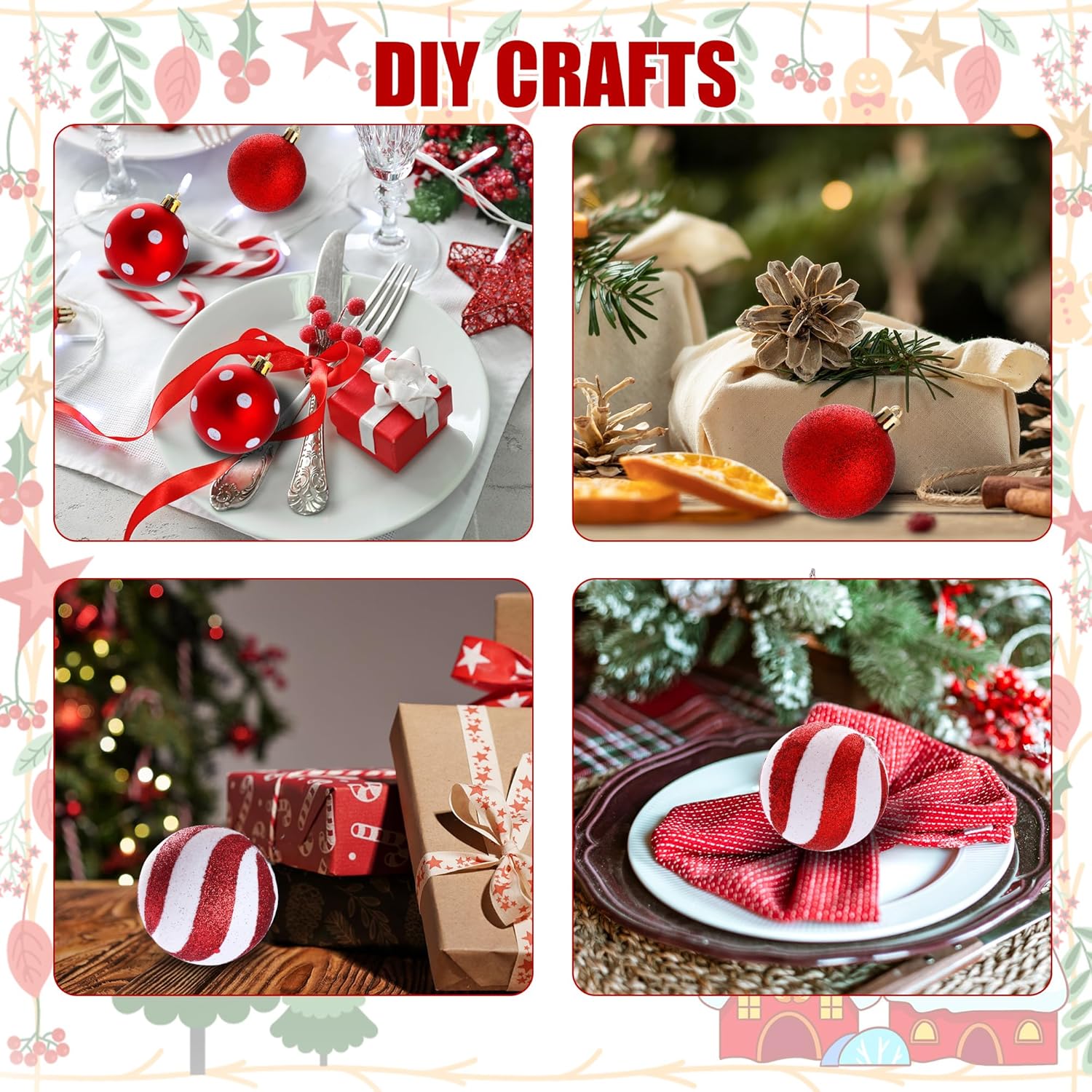 [SPECIAL DESIGN]: We put classic elements of Christmas into the balls by color and design,such as stripe and dots.The color with red and white combination is full of Christmas atmosphere, easy to create a chic of holiday touch. Add this adorable Xmas balls for a bright and colorful compliment to your winter time centerpieces.