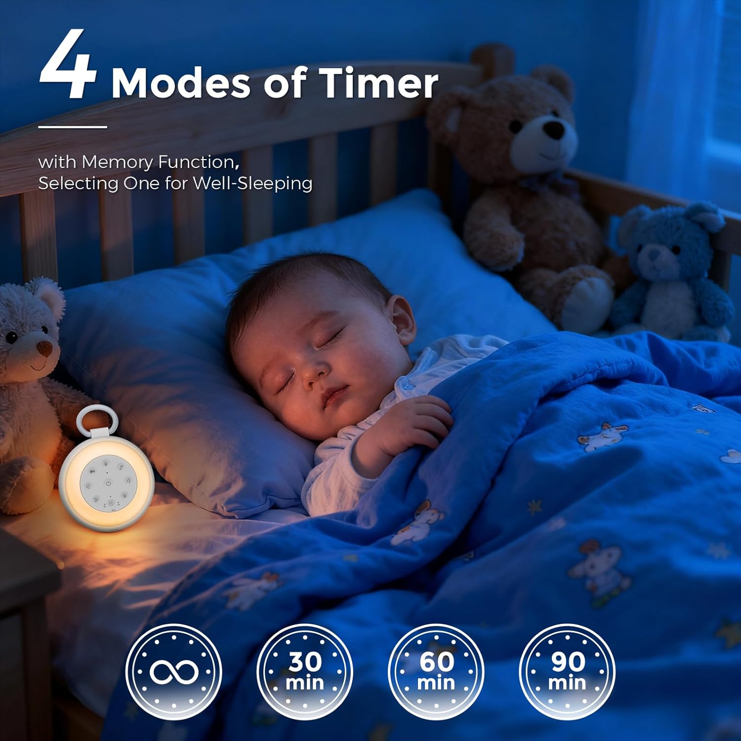 【Soft Night Light with 7 Mood Lights】Soft and gentle amber night light helps mother in night feeding, and there is a unique spot on the button of nursery lamp you can feel when you touch it, which is designed for better using in dark. Also, another 7 kinds of colorful light for you to choose in this baby sleep noise machine, and with the sleep white noise together, accompany your baby and improve sleep quality all night
