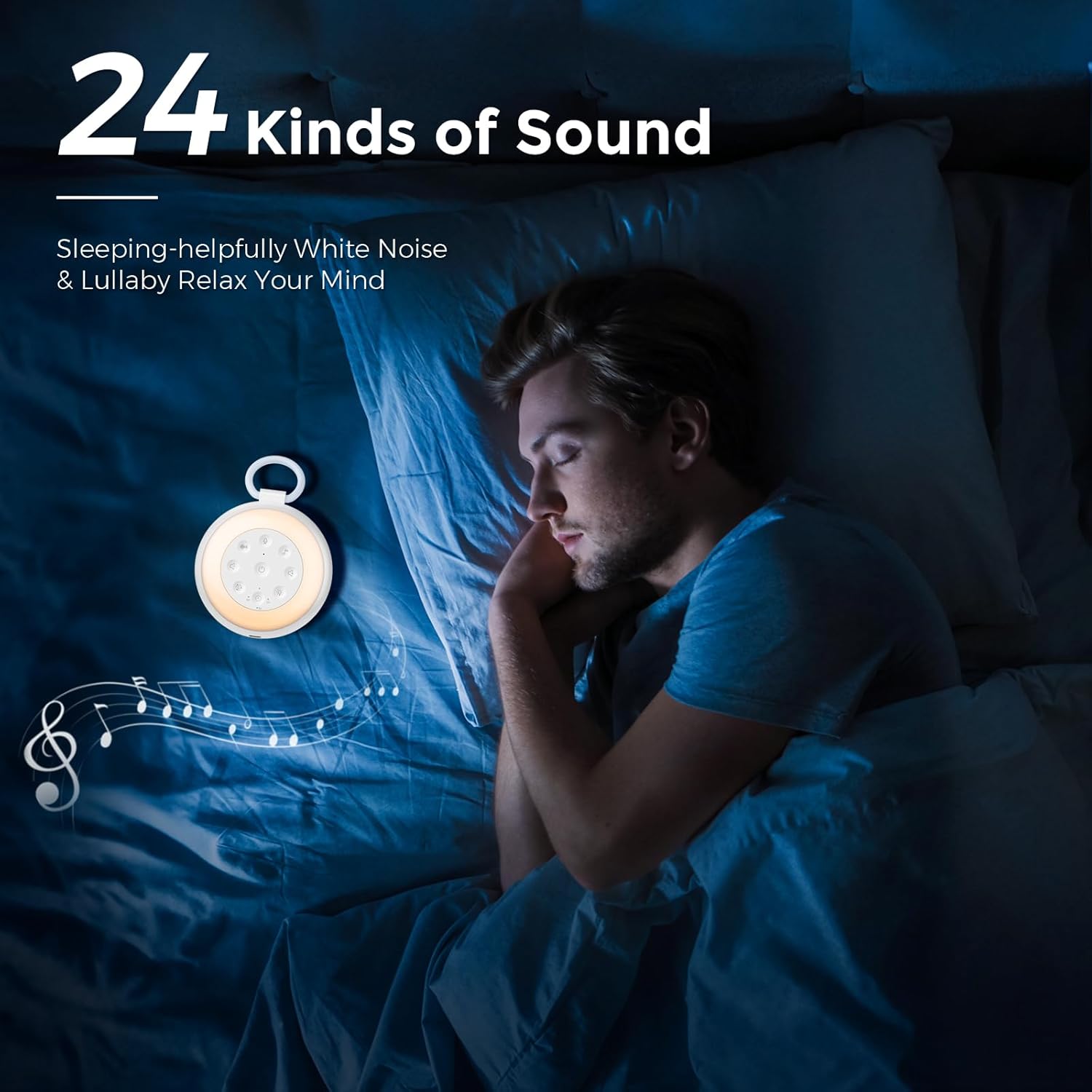 【24 Noise Sounds with 15 Levels Volume】Sizi white noise sound machine features 24 white noise sound options, such as white noise, brown noise, sleep music, natual sounds like breezing, rainning, thunderstorm, camping fire and crikets etc., realistic and clear, to help you relax and unwind. Along with 15 levels volume choices for your personal comfortable hearing, embrace peaceful sleep with this soothing noise sound machine