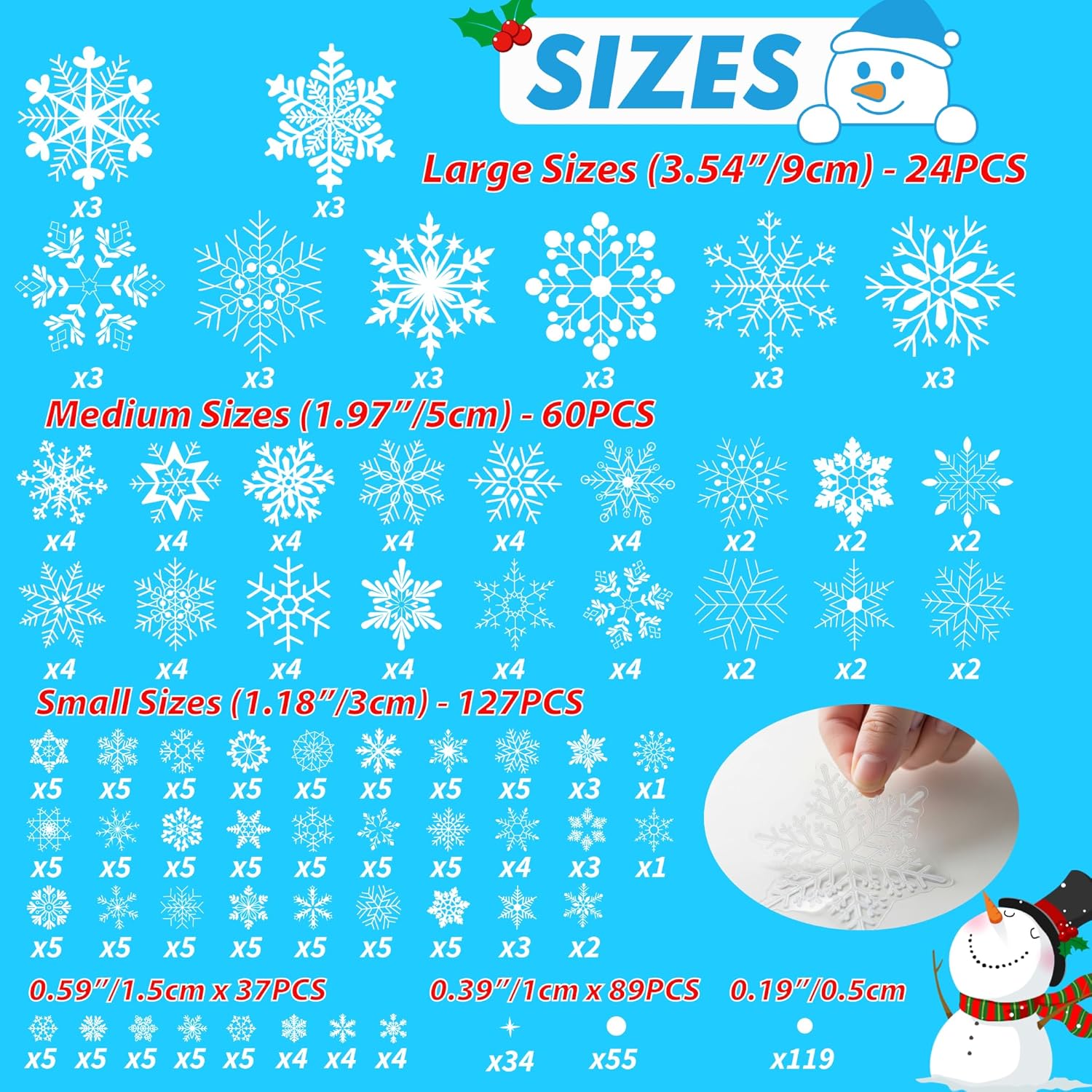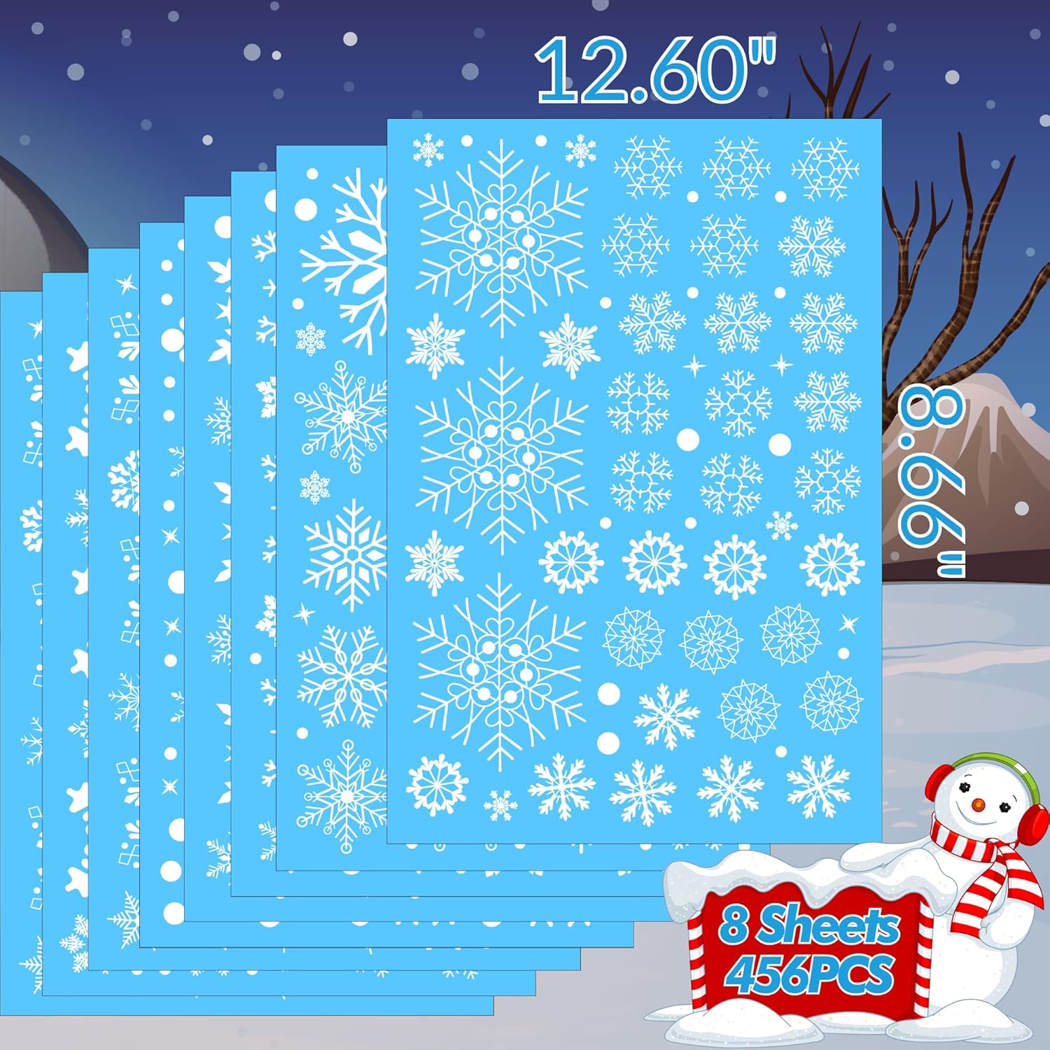 Winter Snowflake Designs: This set includes 456 pieces of snowflake window clings, providing a diverse array of snowflake decorations for a winter wonderland effect. Perfect for both indoor and outdoor use, these winter window clings will transform your glass surfaces into a festive display.