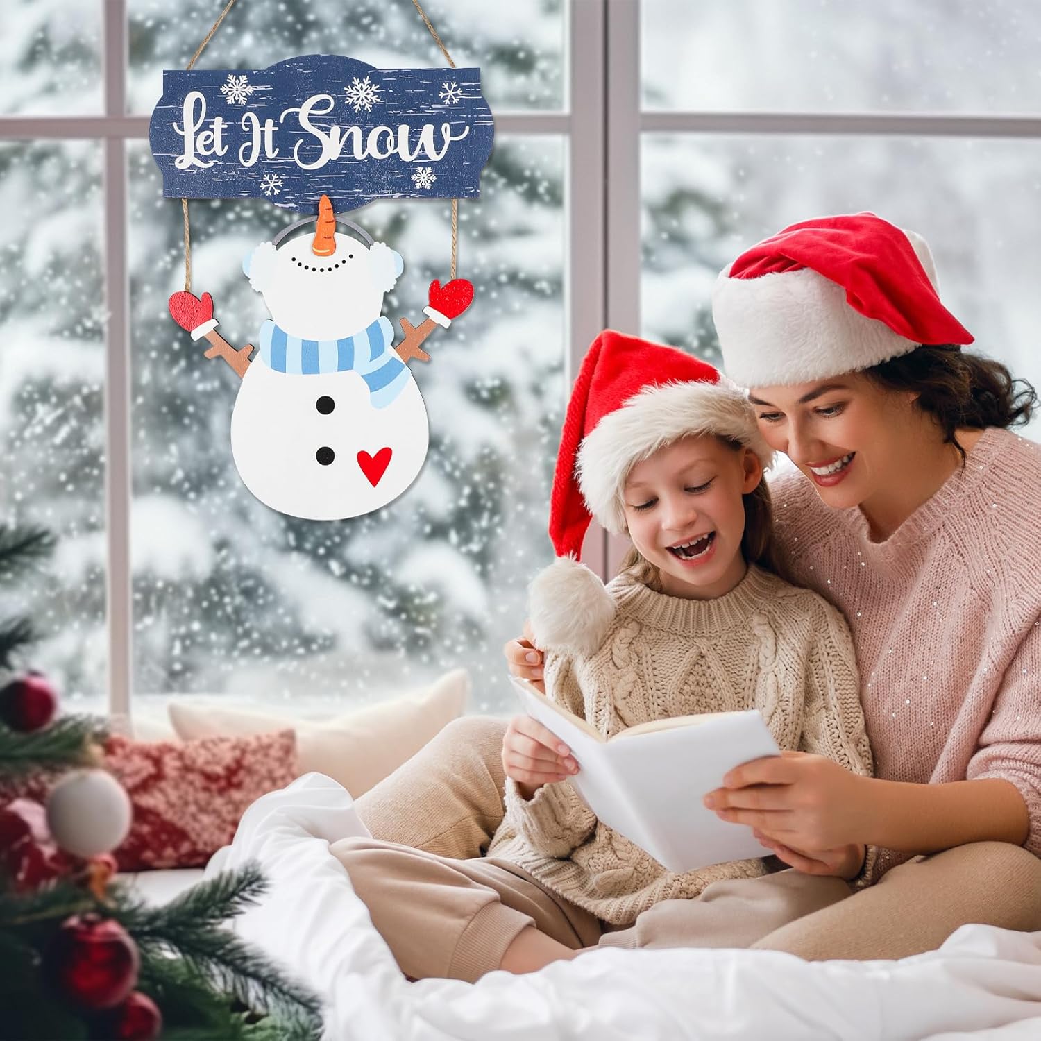 Let It Snow Sign: Wooden door decorations adopt the theme of classic snowman with the words “Let it Snow”, it’s a great choice for winter and Christmas decorations. Add a strong festive atmosphere to your home and enjoy the beauty they bring You can