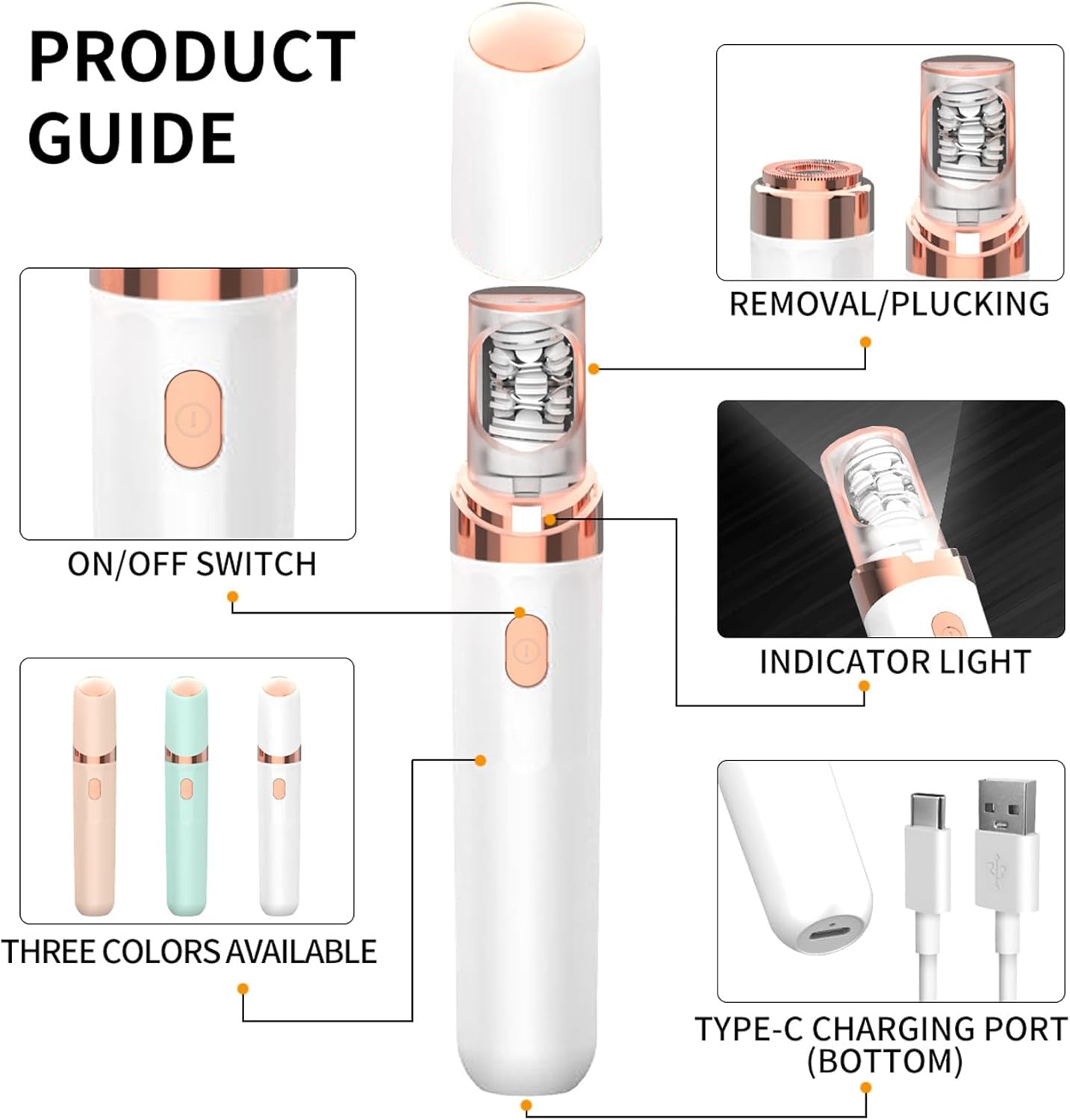 【Painless Precision for Sensitive Skin & Peach Fuzz】Gentle facial epilator removes ultra-fine hair (0.5mm+) without redness or irritation. Perfect for delicate areas like upper lip, chin, and cheeks—ideal for sensitive skin with zero pain.