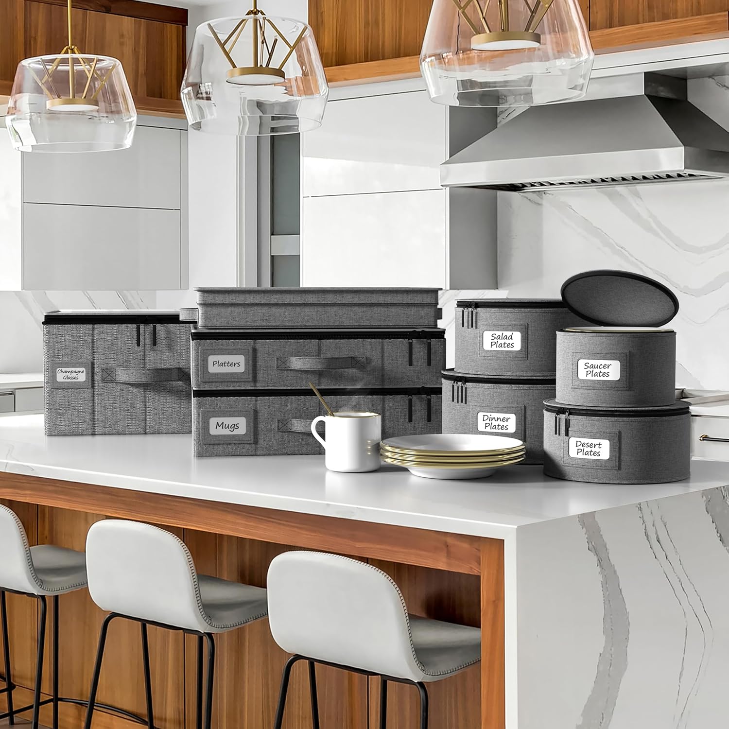 ✅ COMPLETE 6-PIECE SET HOLDS SERVICE FOR 12 — Includes dedicated containers for dinner plates, salad plates, dessert plates, saucers, mugs, and stemware—everything you need to store a full 12-piece set with care.