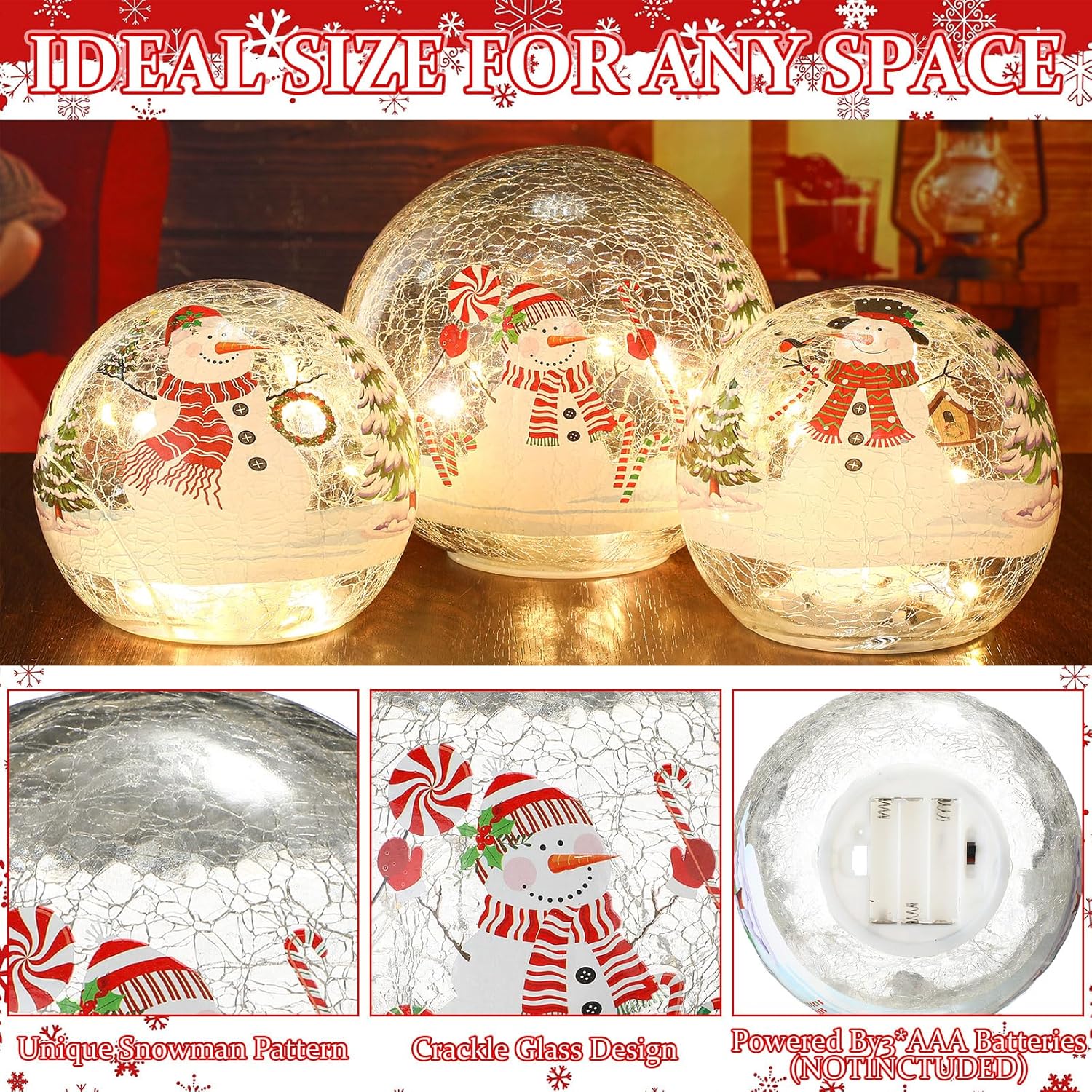 Elegance in Every Bulb: crafted from glass, these Christmas table top decors promise lasting durability and elegance; The crackle design, adorned with charming snowman motifs, adds a unique touch to your holiday decor that guests will admire and appreciate year after year