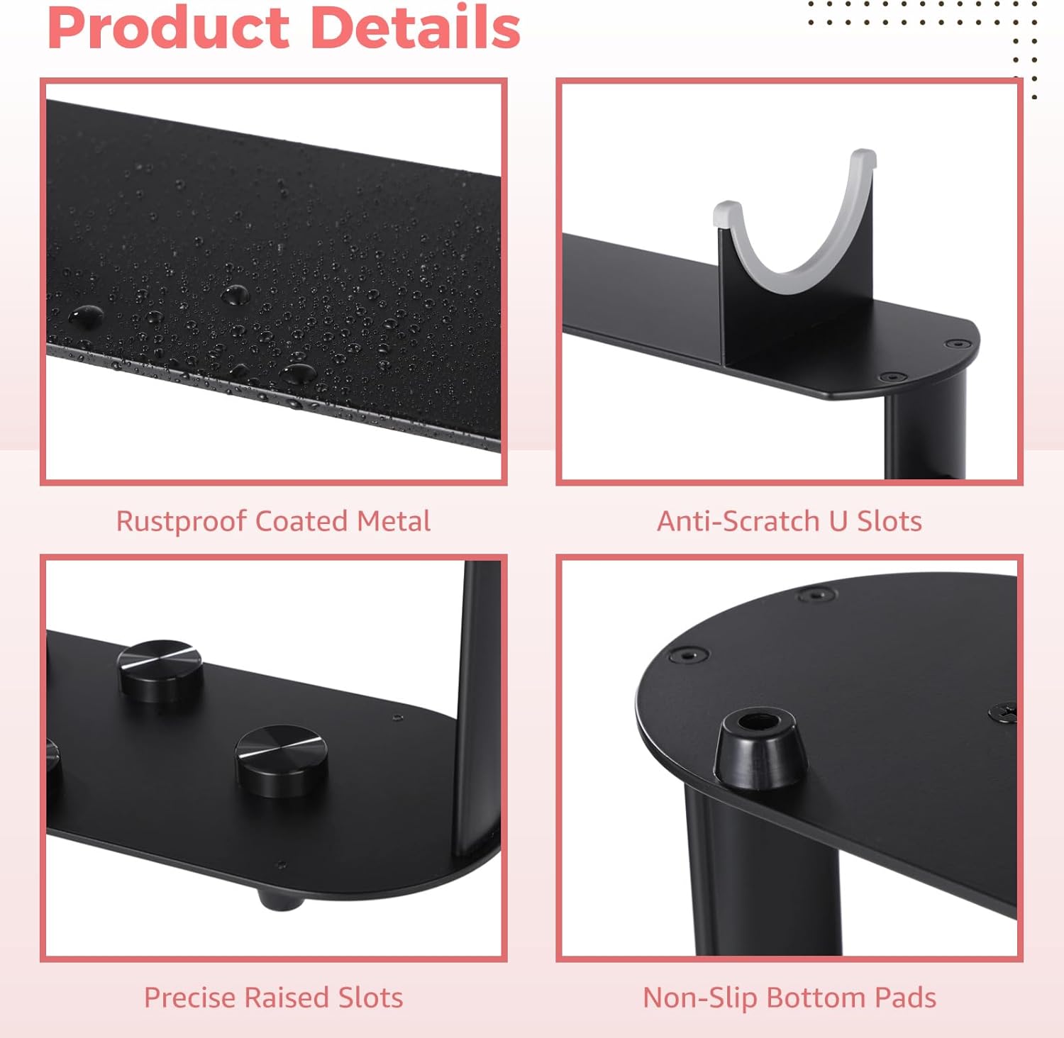 Robust Metal Construction: Experience great reliability with our black metal hair tool organizer; crafted to offer stable and lasting service; supports vertical placement of hair tools for easy access