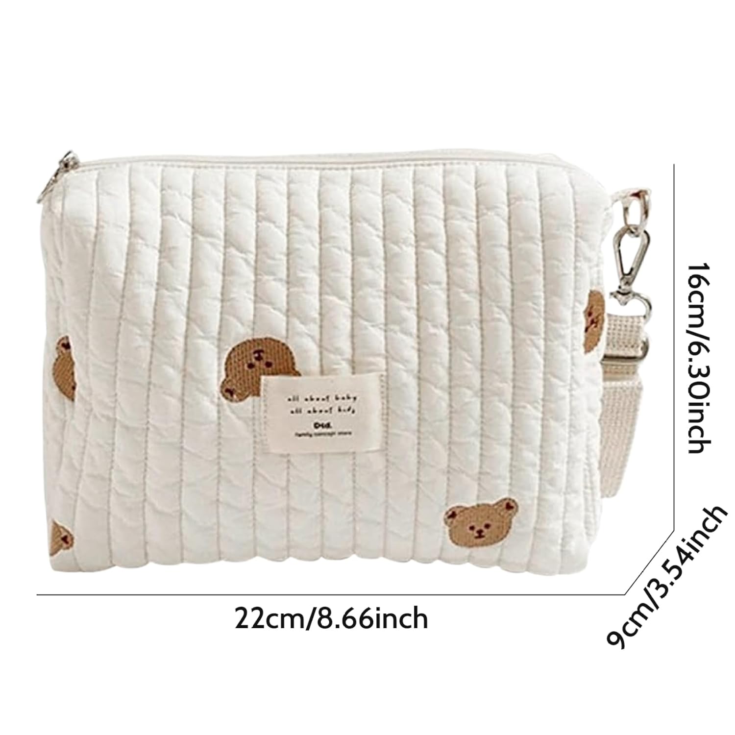The stroller caddy is a cute and practical accessory for parents with babies. With its cute cartoon-style bear pattern, it appeals to children while also being loved by parents. Its compact size and large capacity make it easy to carry and store various baby items. Made from quality cotton material, it is soft, comfortable, and safe for storing baby items. The smooth zipper closure and easy installation make it convenient to use. It is an essential accessory for parents with babies, helping to keep baby items organized and easily accessible while on the go. It is also a great for new mothers from friends and family. Enhance your baby’s stroller with the stroller caddy, providing a cute and practical storage solution for all your baby’s needs.