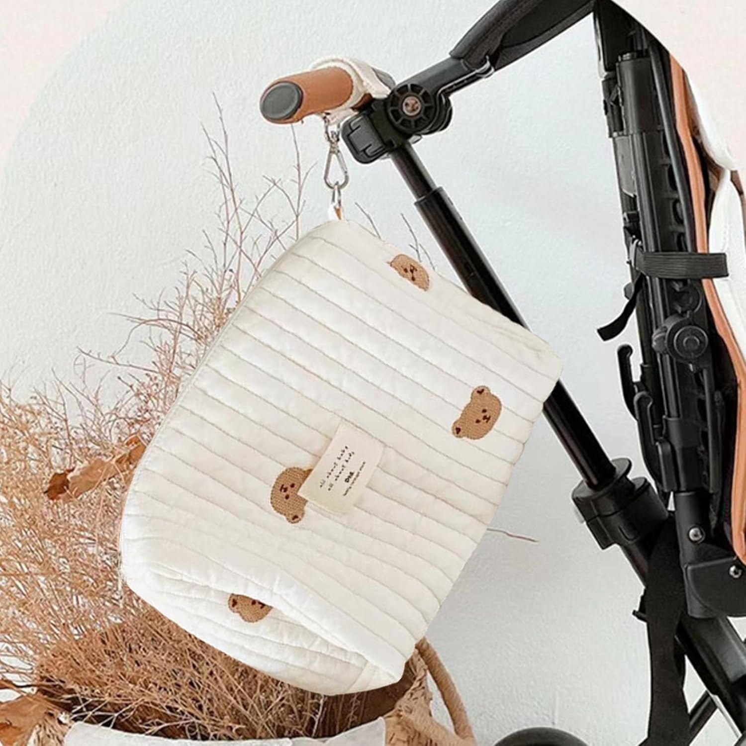 Cute and Adorable: The cute little stroller caddy features a cartoon-style bear pattern, making it an adorable and attractive accessory for baby strollers. Its cute look will effectively appeal to the baby while it can also be a cute item loved by parents.
