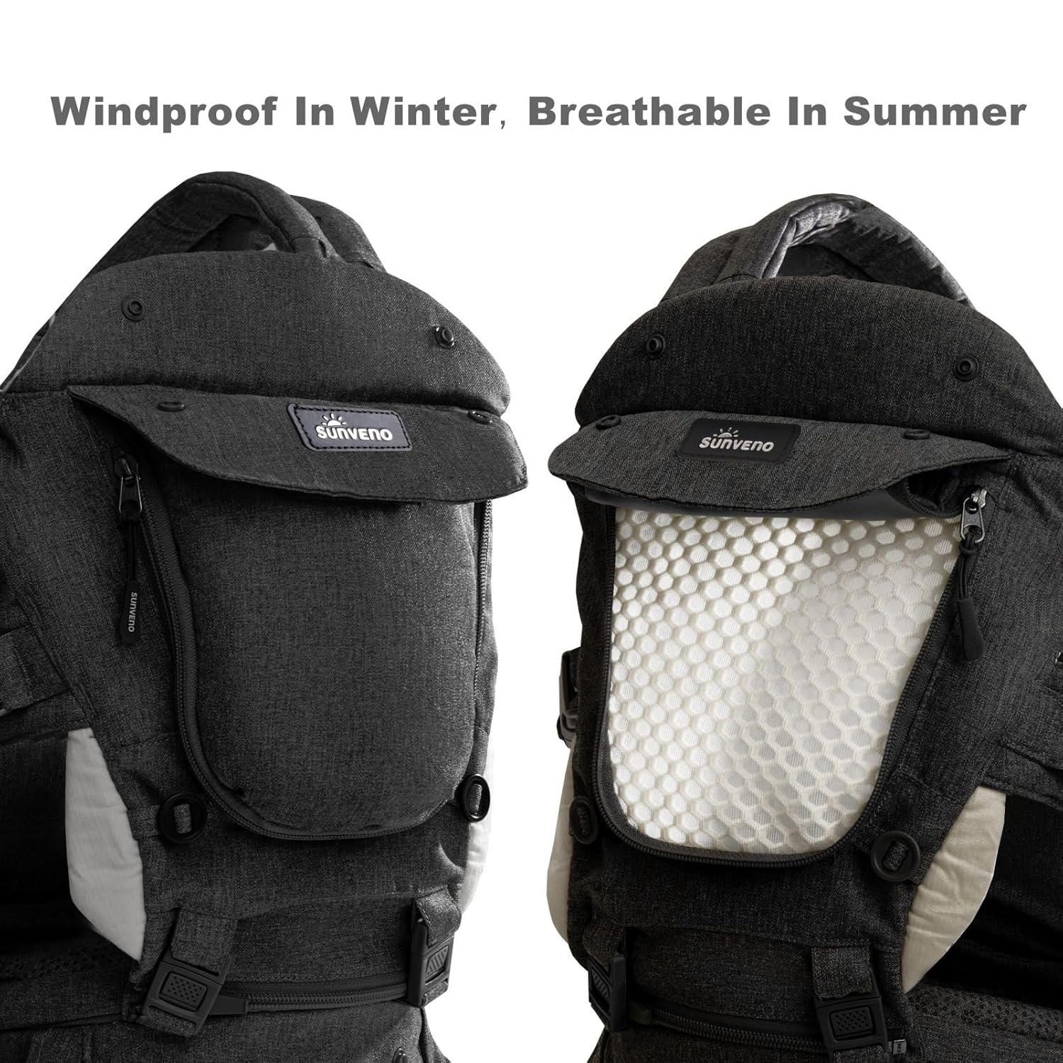 SUNVENO 3 in 1 Ergonomic Baby Carrier with Hip Seat for Newborns and Toddlers, Supports 20 lbs and Up, Waist and Back Relief with Large Weight Capacity for All Season Use,Black