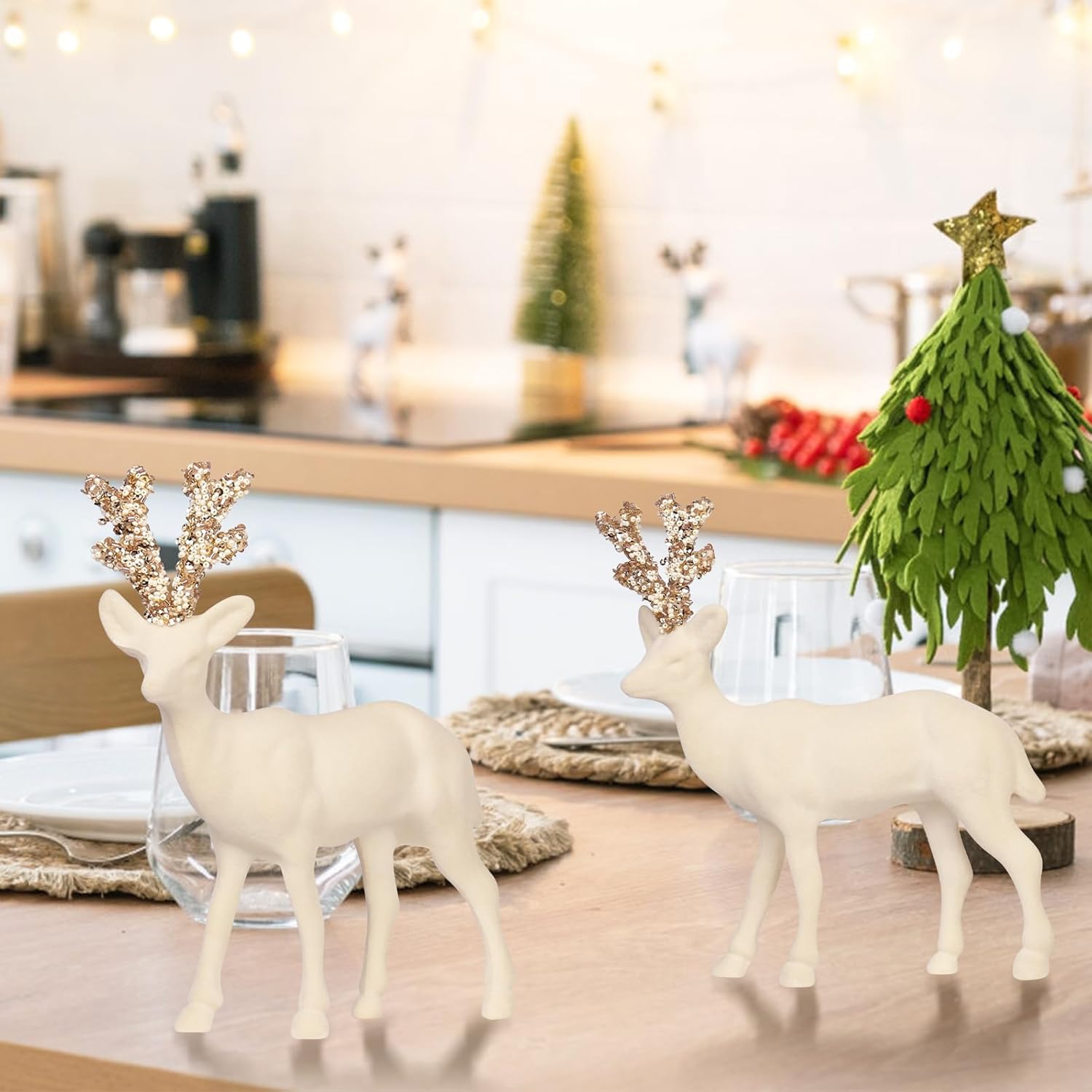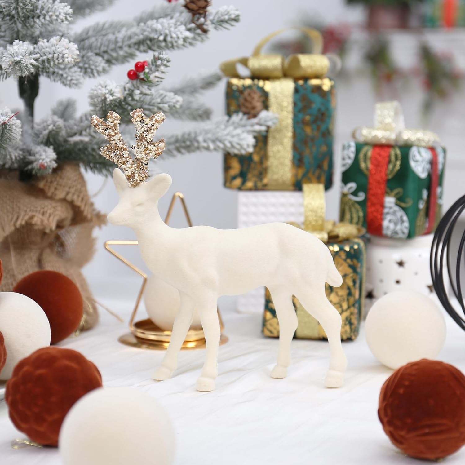 SY Super Bang 2PCS Velvet Reindeer Christmas Decorations, Beige Flocking Deer Figurine Statue Table Decorations, for Home Holiday Xmas Gift Party Decor.