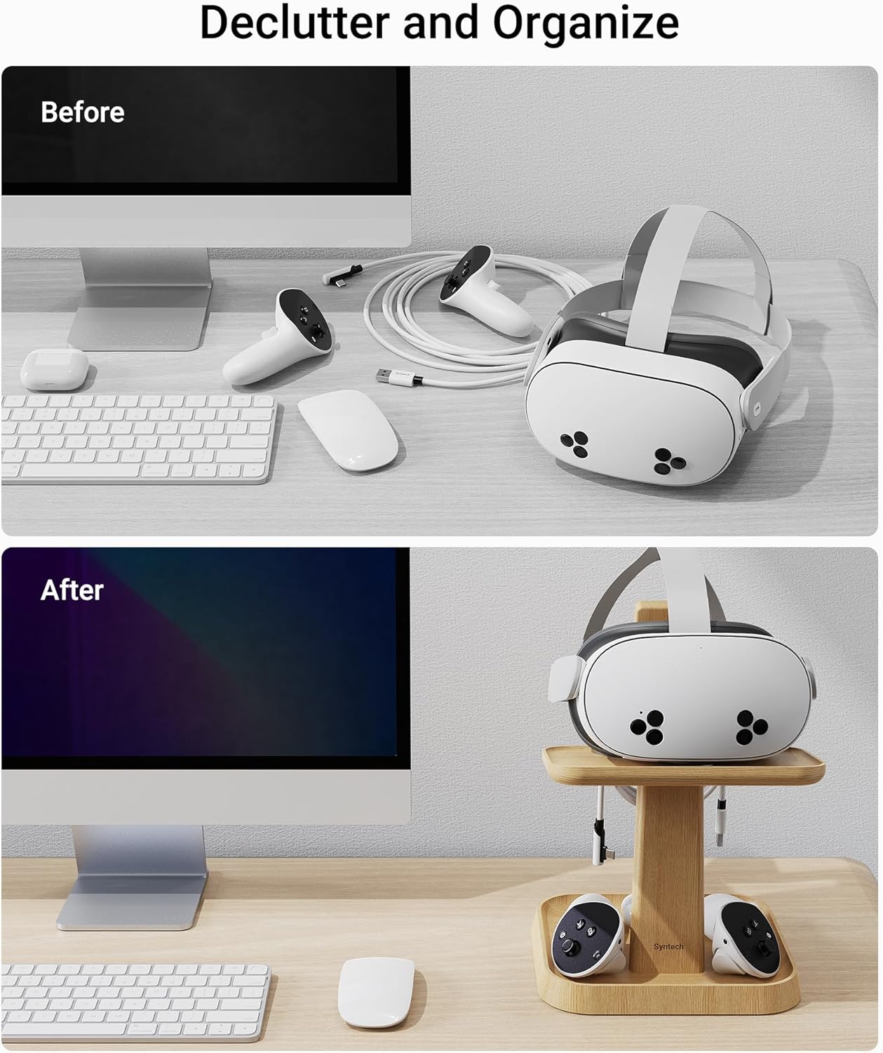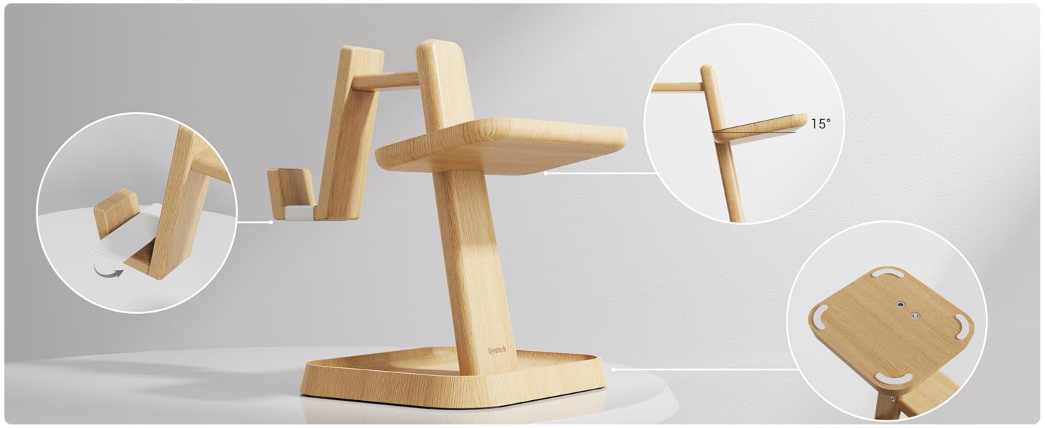 Durable and Wooden Design: Exquisitely carved from beechwood, it seamlessly blends the softness and good load-bearing performance of the material. The Syntech wooden VR stand not only offers stable support but also effectively mitigates the potential damage from bumps and reduces the wear and tear caused by long – term use.