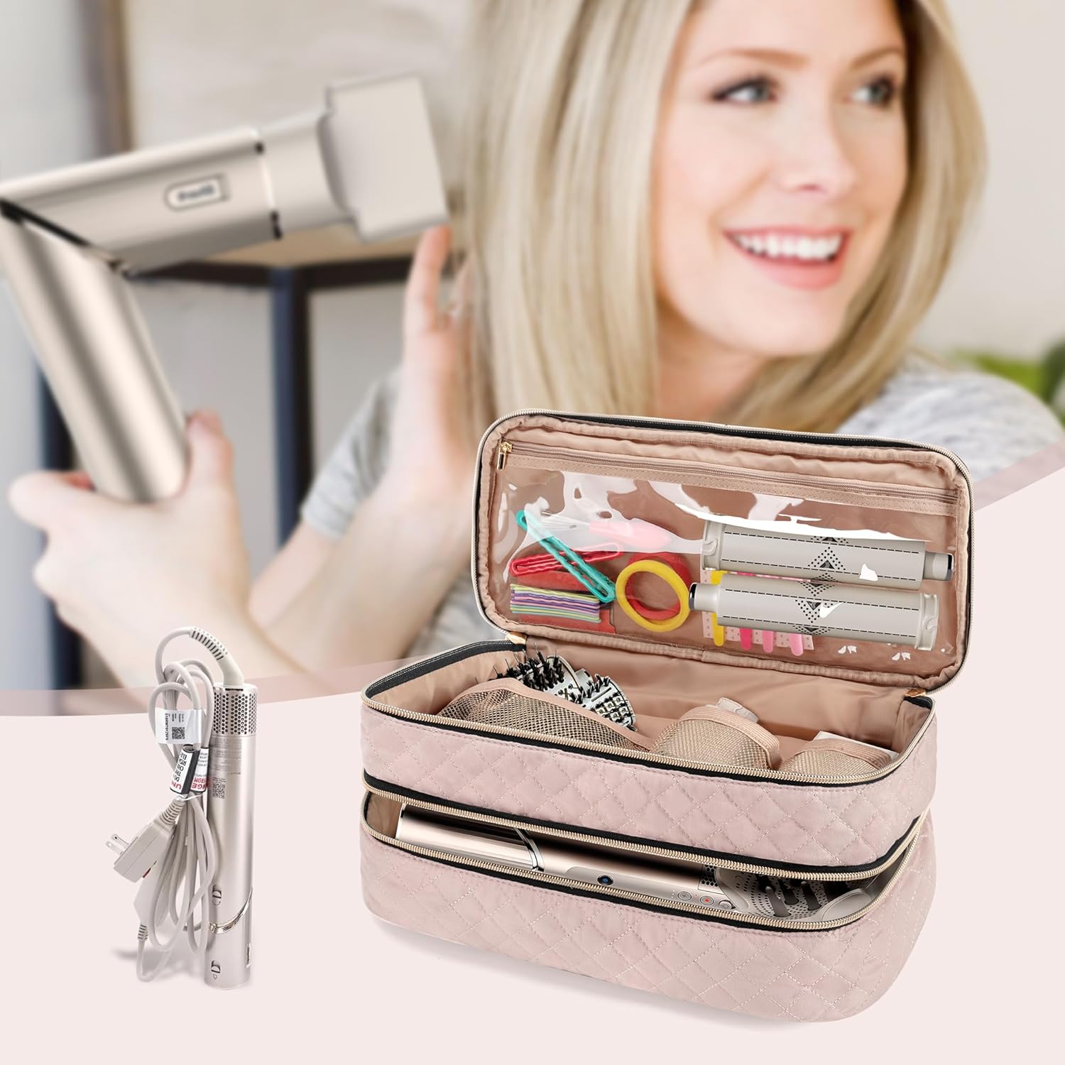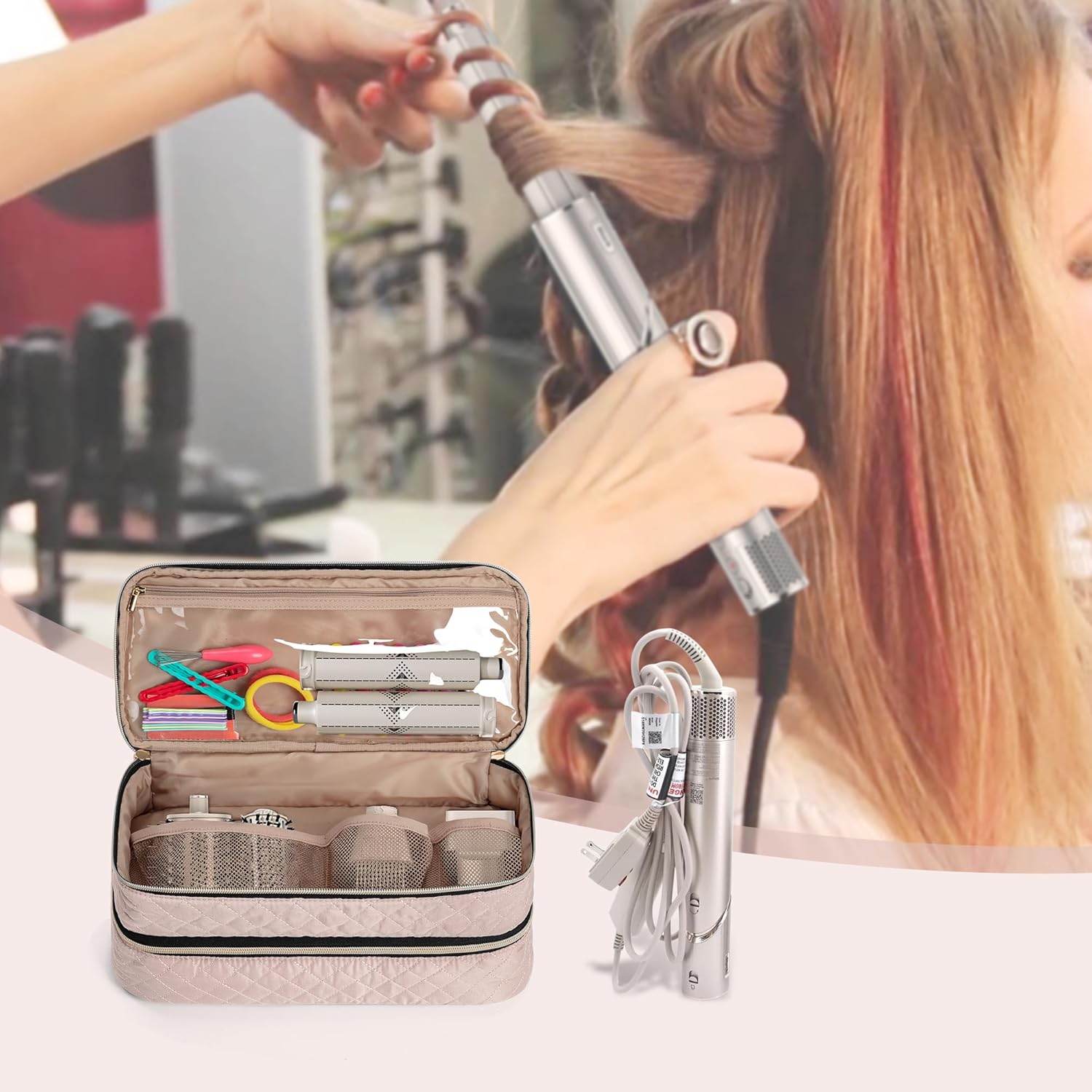 MULTI-FUNCTIOANAL: The airwrap travel case can not only be a tool for organizing hair accessories. It also can be a travel bag, business trip bag, cosmetic bag, toiletry bag. It’s an ideal gift for your girlfriend, mother, daughter, wife & friends on Christmas, birthday, anniversary, Valentine’s Day. (*Our Product is unrelated to brand referred)