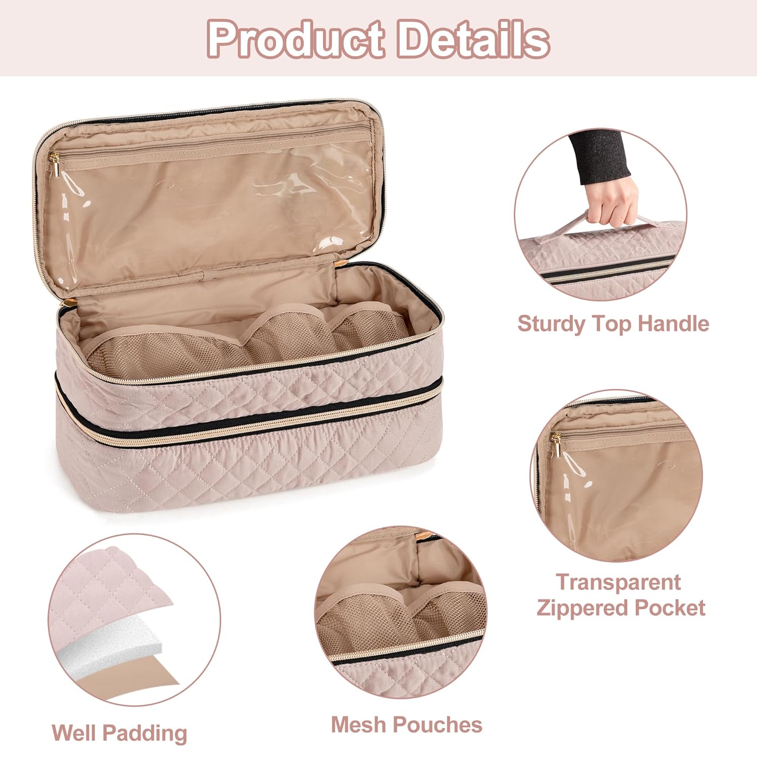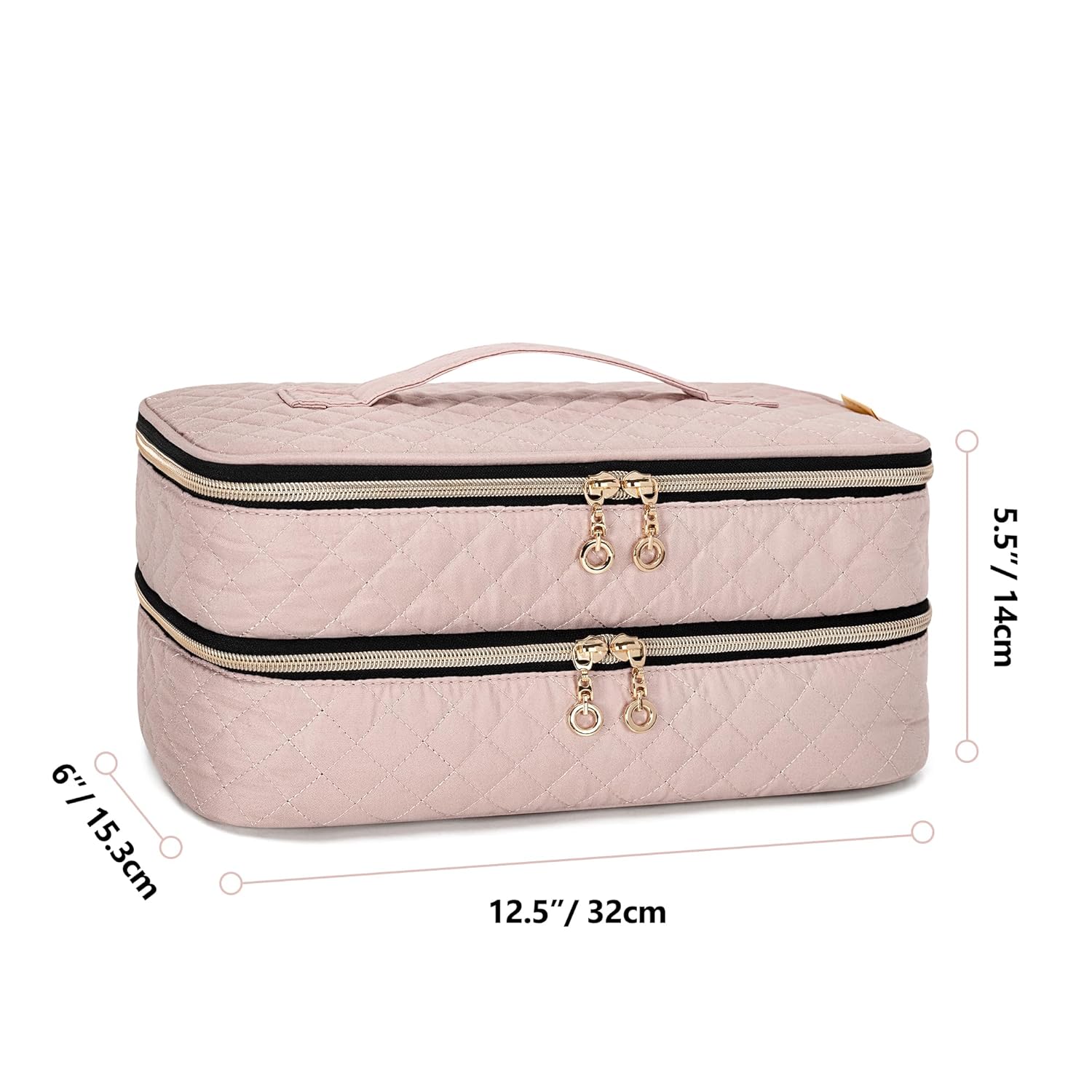 UNIQUE DESIGN: Top Handle design is portable to carry. Two way zippers are easy to access. The stitching cover makes the case exquisite and gorgeous. Zipper pocket and mesh pockets keep hair accessories in place and ensure security.