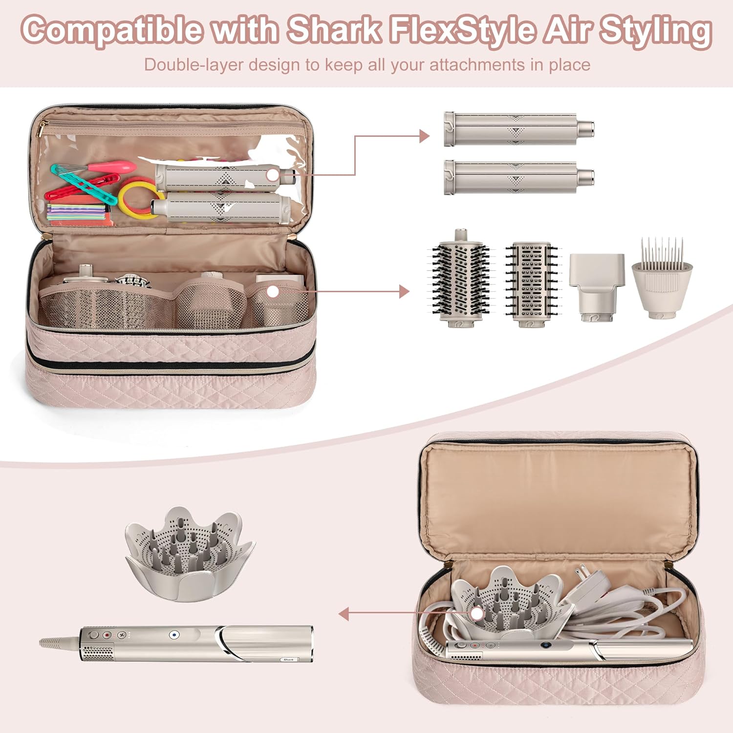DOUBLE LAYERS DESIGN: Specially compatible with Shark* FlexStyle Styling (HD 435/430). Double layer design perfectly separates the hair air styling/hair dryer body and accessories to avoid scratches.