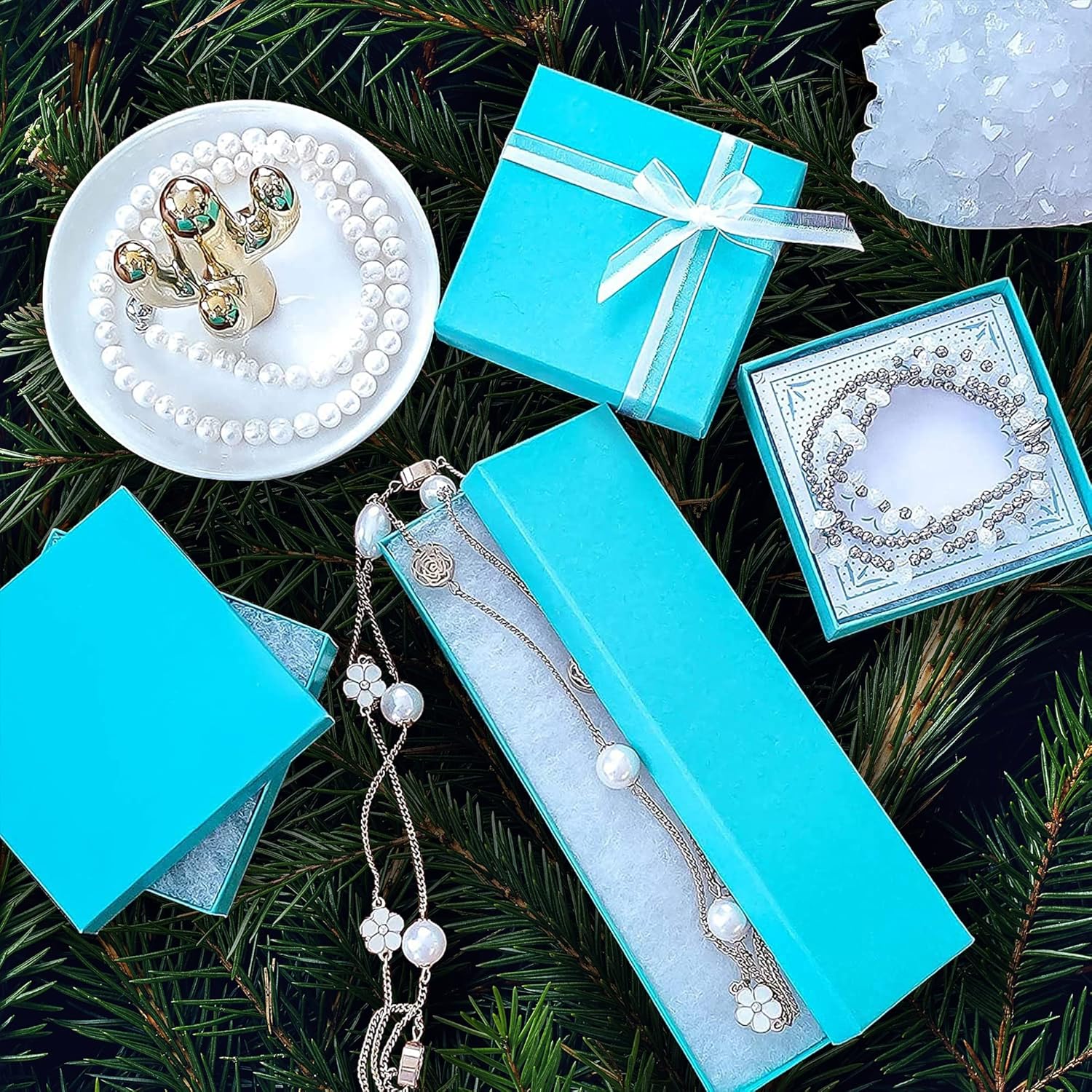 TheDisplayGuys – 25-Pack #82 Kraft Paper Cardboard Gift Boxes/Jewelry Cases w. Cotton Padding & Lid – Pearl Teal – (8.0″ x 2.0″ x 1.0″)