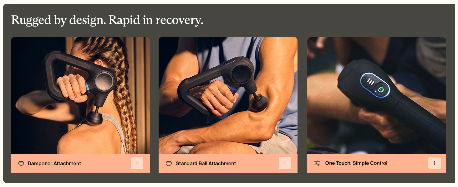 INCLUDES 2 VERSATILE ATTACHMENTS FOR FULL-BODY RECOVERY: Dampener for sensitive areas and Standard Ball for all-over recovery across muscles of all sizes.