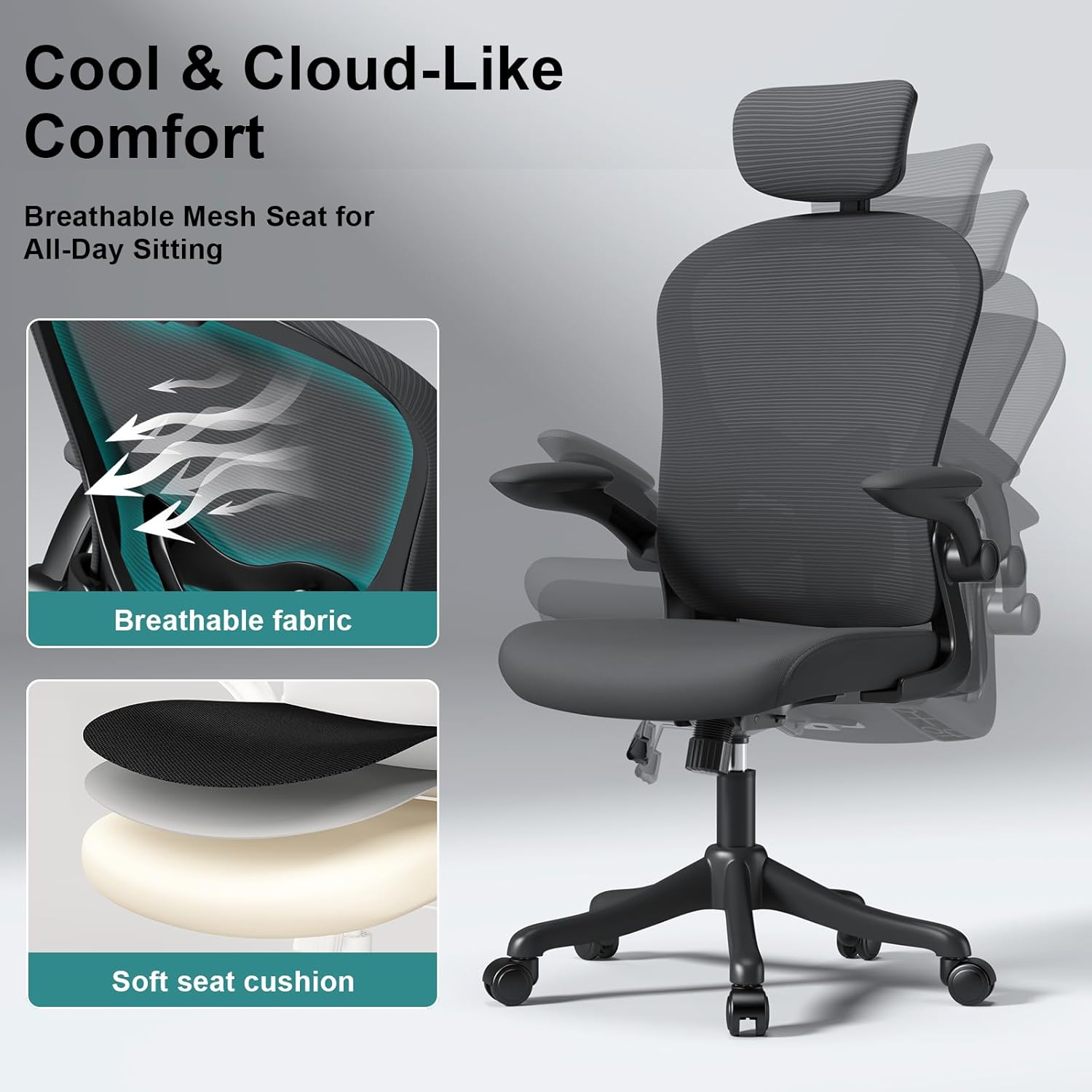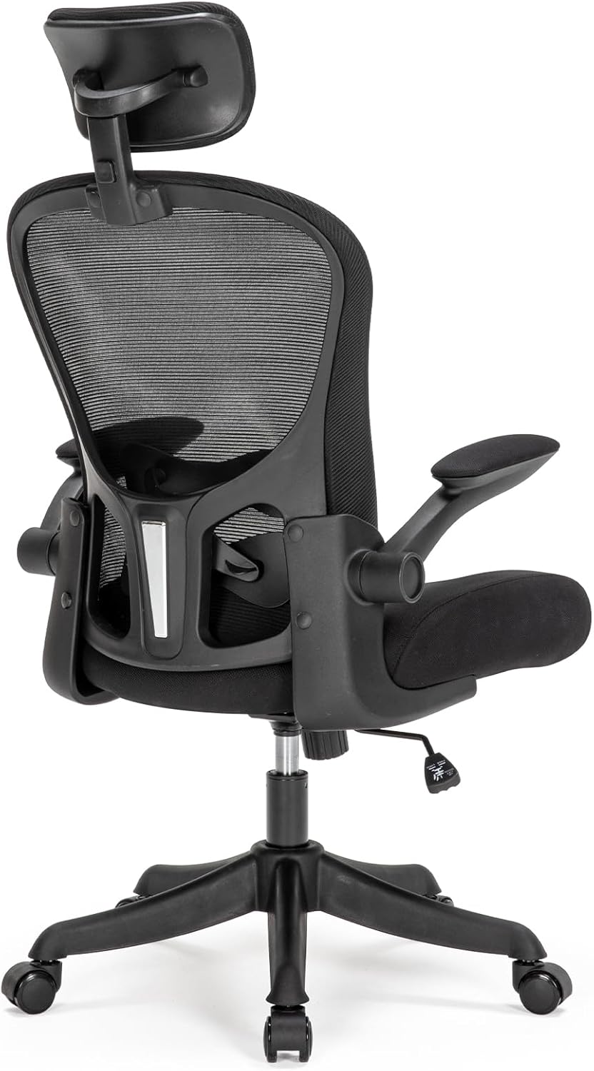 【90° Flip-Up Armrests】Flexibly adjust the armrest angle to your preference, with padded surfaces that minimize elbow pressure. When raised, the armrests allow the chair to slide effortlessly under desks, maximizing space efficiency in compact areas