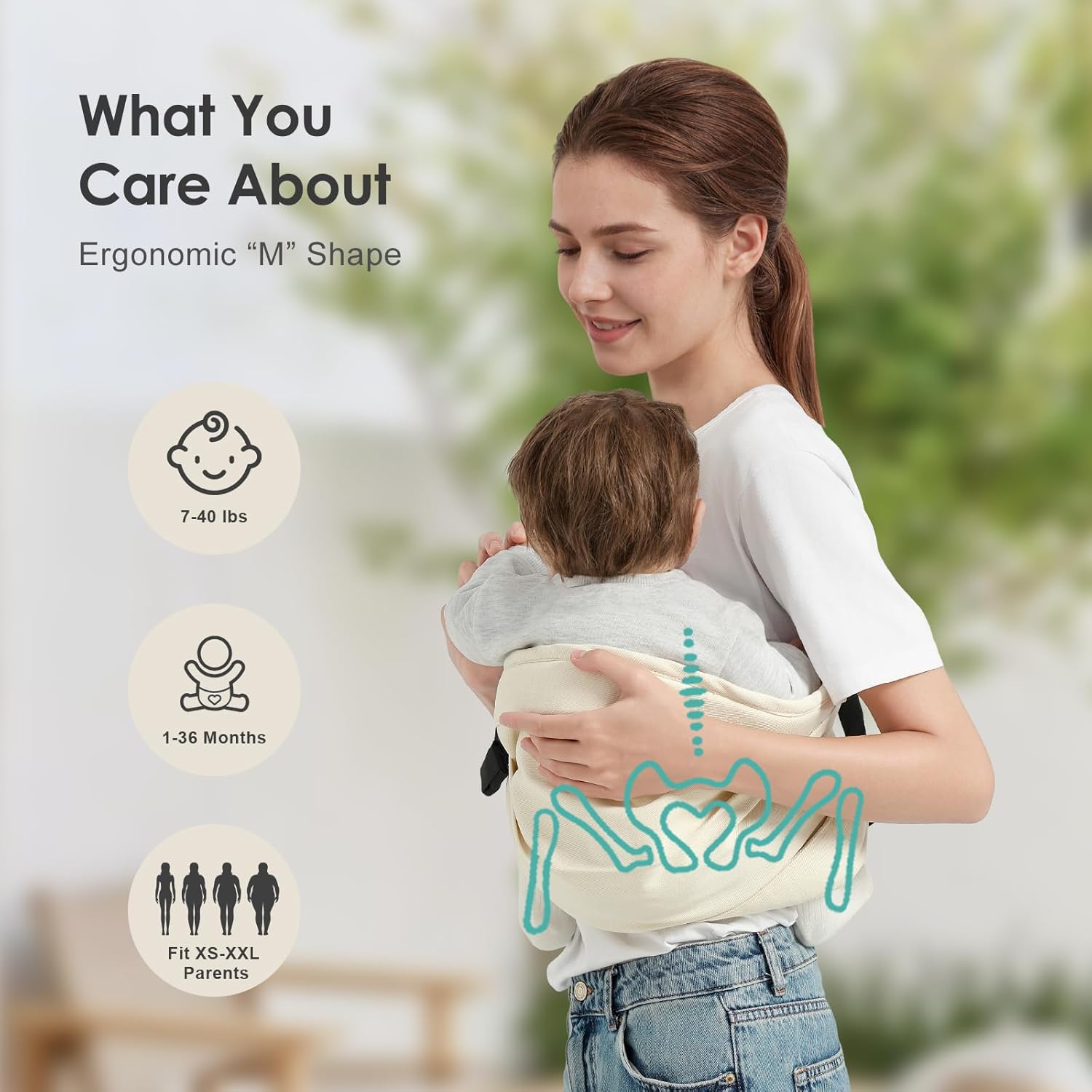 Toddler Sling Carrier, Lightweight Baby Sling for Newborn, Adjustable Toddler Hip Seat Carriers Carrying 7-40 lbs, Beige