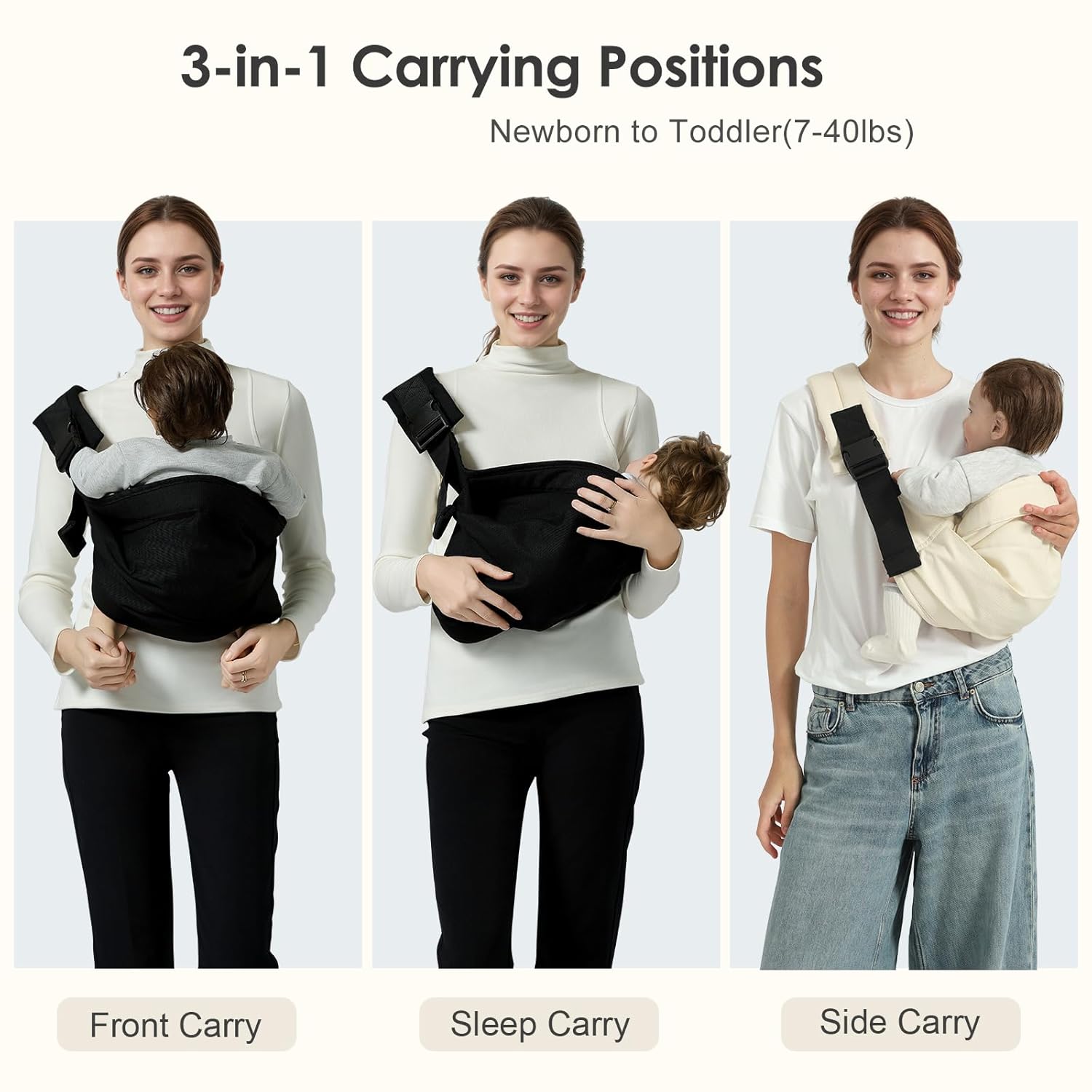 Double Adjustable Belts: Adjustable size of the Sling Carrier not only designed to hold babies from 7 to 40 lbs, but also ensures a snug and secure fit for all parents.