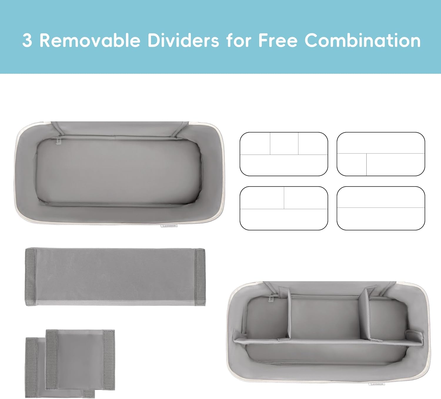 Portable Design:Featuring a smooth double zipper and three detachable partitions, this hair dryer organizer allows you to customize the storage layout to fit your needs. The clear PVC pocket at the top offers easy visibility and access to your items. Spacious compartments ensure ample room for your styling tools, attachments, and cords.