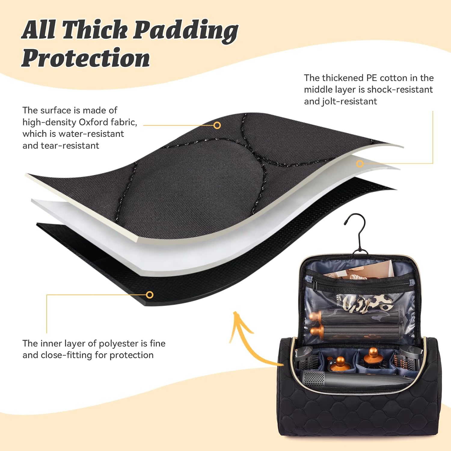 Thick Padded Protection – Constructed with 3-layer full-around padding that shields your styler and attachments from scratches, dust, or impact. The durable fabric and smooth metal zippers provide long-lasting performance for both travel and daily use.