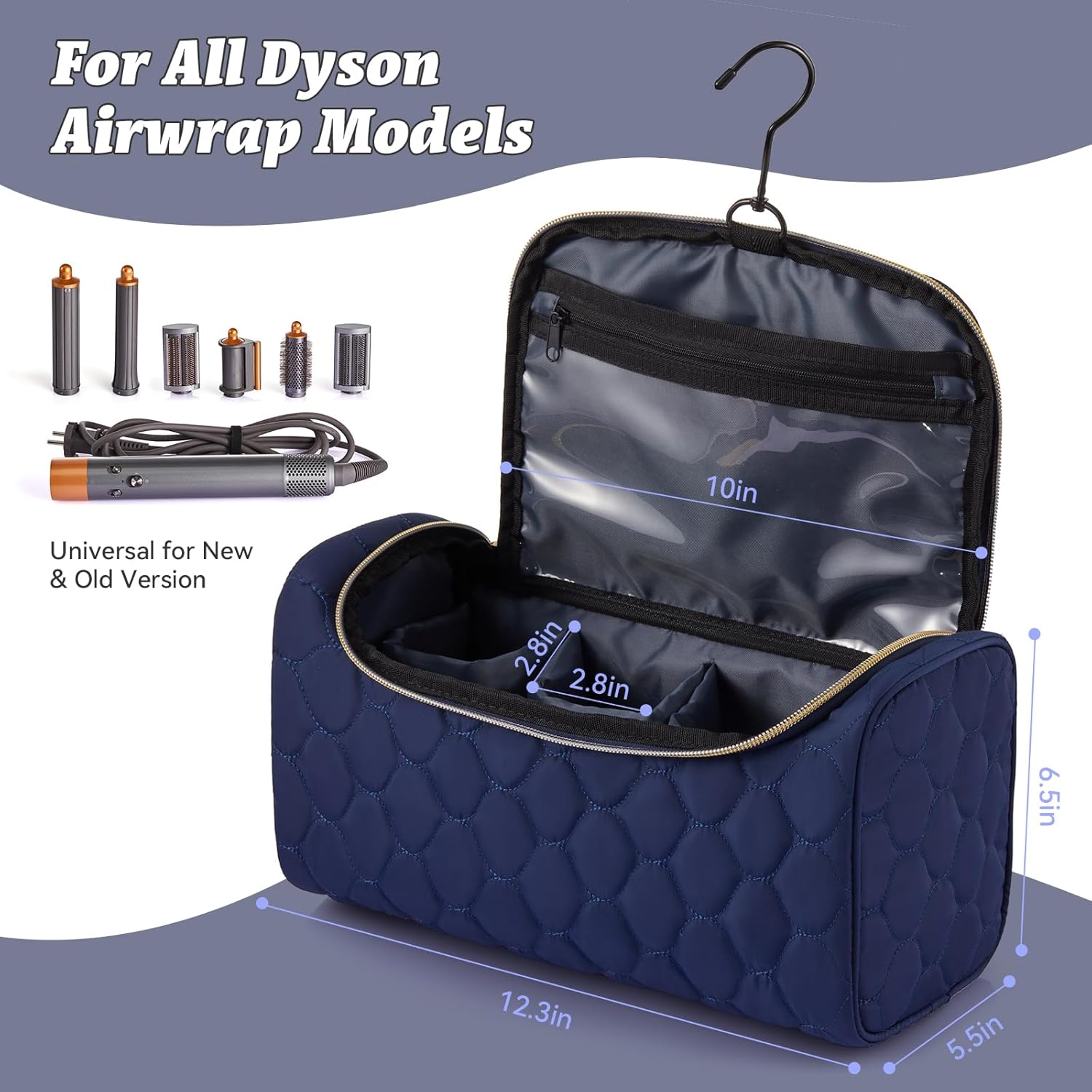 Universal Compatibility – Specially designed to fit all Dyson Airwrap models, including Complete, Complete Long, and other versions. Also compatible with Shark FlexStyle hair styling tools. Dimensions: 12.3″ x 5.5″ x 6.5″ (closed), offering reliable storage for barrels, brushes, and accessories.