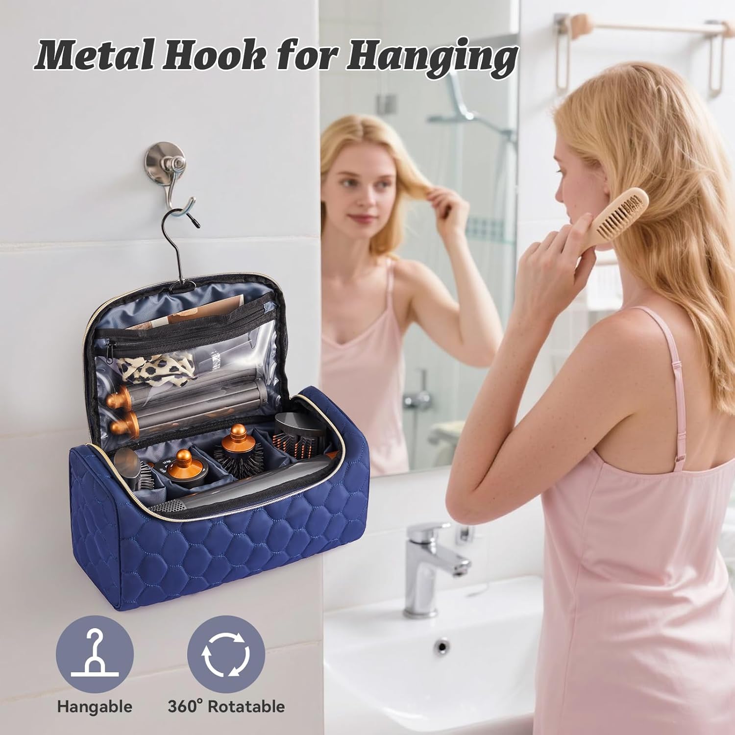 Travel-Ready with Hanging Hook – Equipped with a rotatable, non-slip metal hook for easy hanging on doors, walls, or towel racks. Compact and portable, this case fits into suitcases or carry-on bags without taking up much space—ideal for home or on-the-go styling.