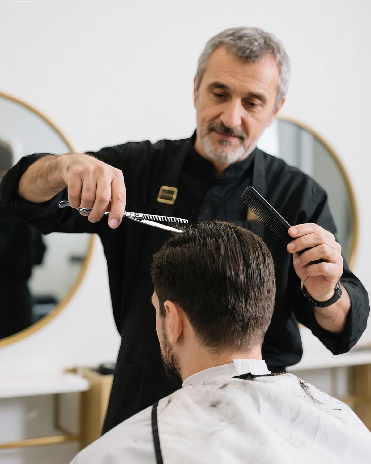 High-End Thinning Scissors: Crafted from 100% Japanese stainless steel, these professional thinning shears deliver precision cuts with long-lasting sharpness. The 30-tooth seamless thinning blade removes bulk naturally with no split ends, ideal for salon-quality results by pros in the salon or first-time users at home.