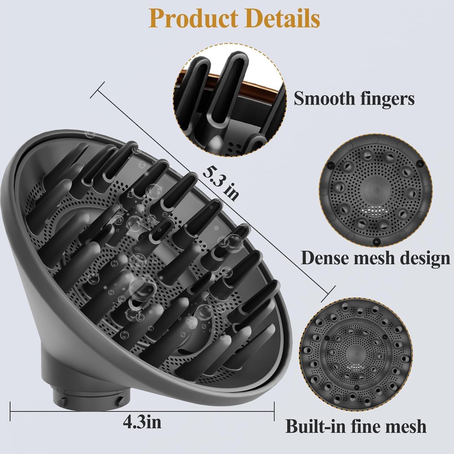 ✨【Upgraded Safety & Comfort】Heat-resistant nylon protects hair from scorching, while the **lightweight design** (40% lighter than metal diffusers) reduces arm fatigue. Gentle airflow prevents heat damage—ideal for delicate or color-treated hair.